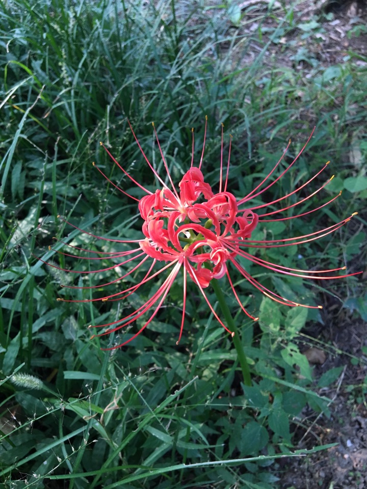 红花石蒜是去年九月份在北京植物园发现的,那是在宿根园,当欣赏完其它花往外走的时候在某棵树下突然发现了它。跟忽地笑相比,彼岸花显得更精美,更有艺术感。