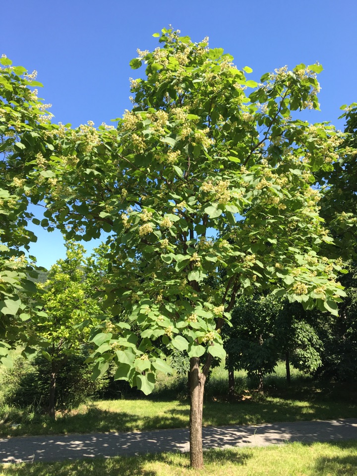 最近在植物园看到一种新树, 其花跟楸很像,用形色一查,居然叫梓,还是常说的桑梓的梓!