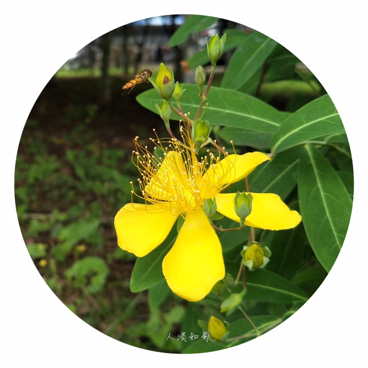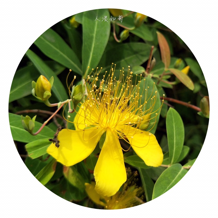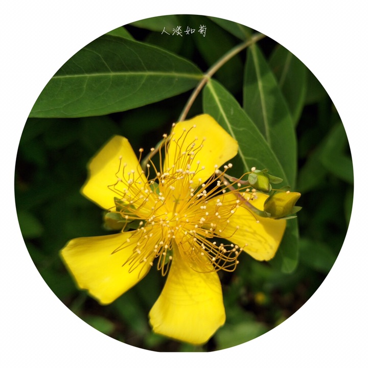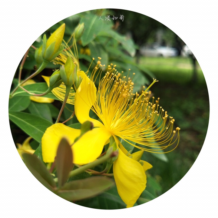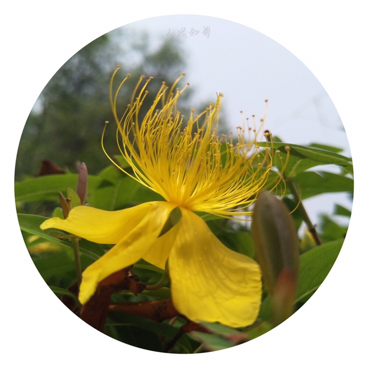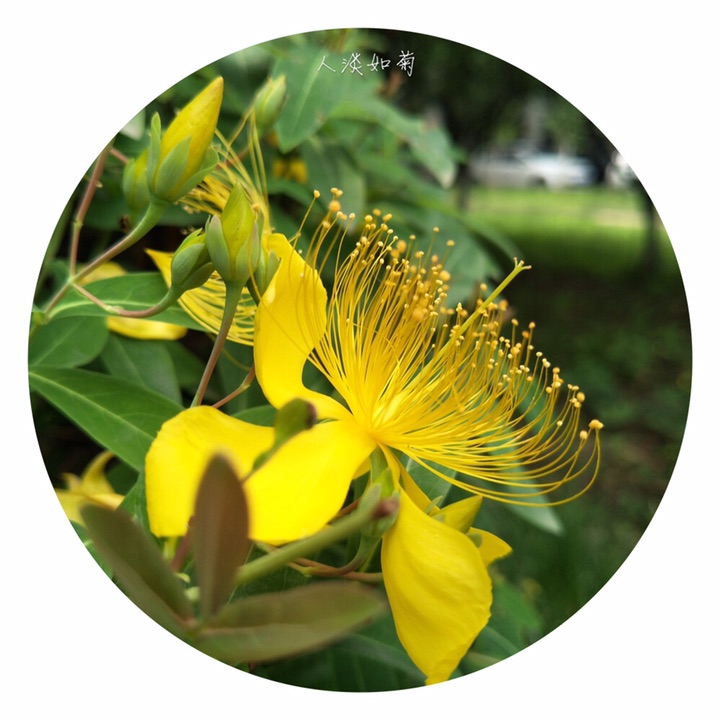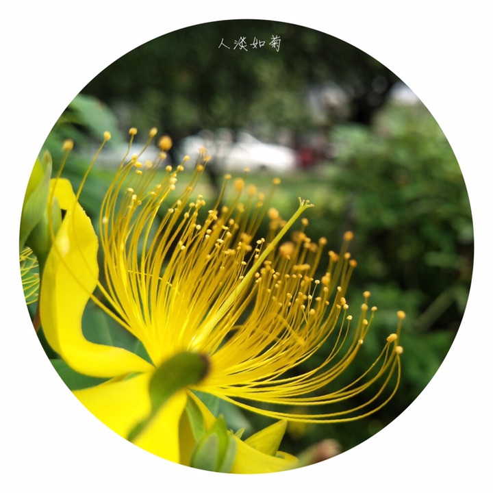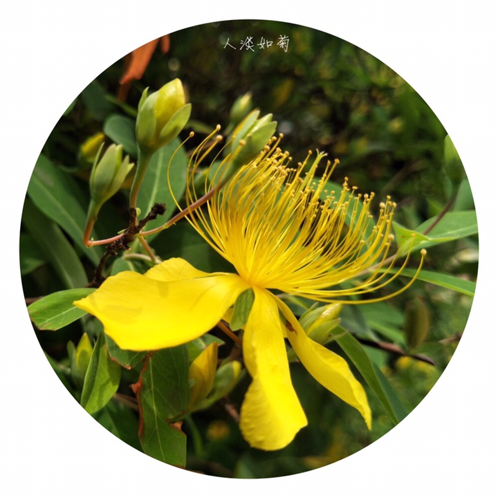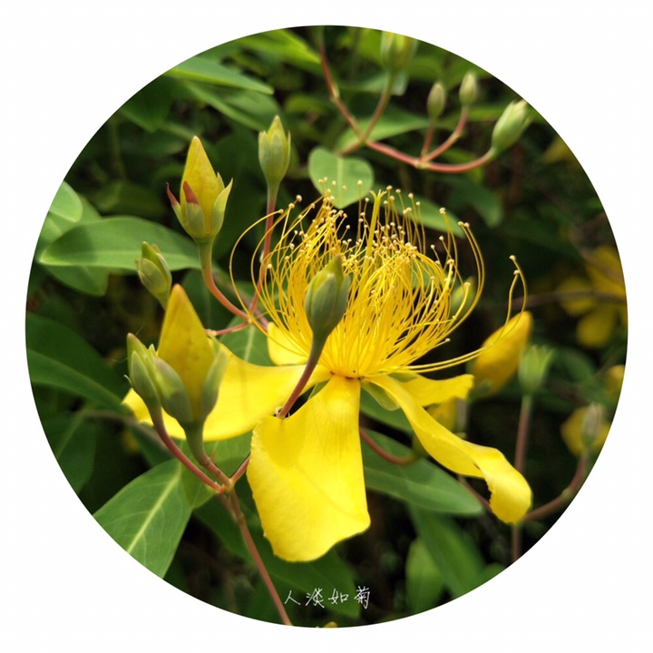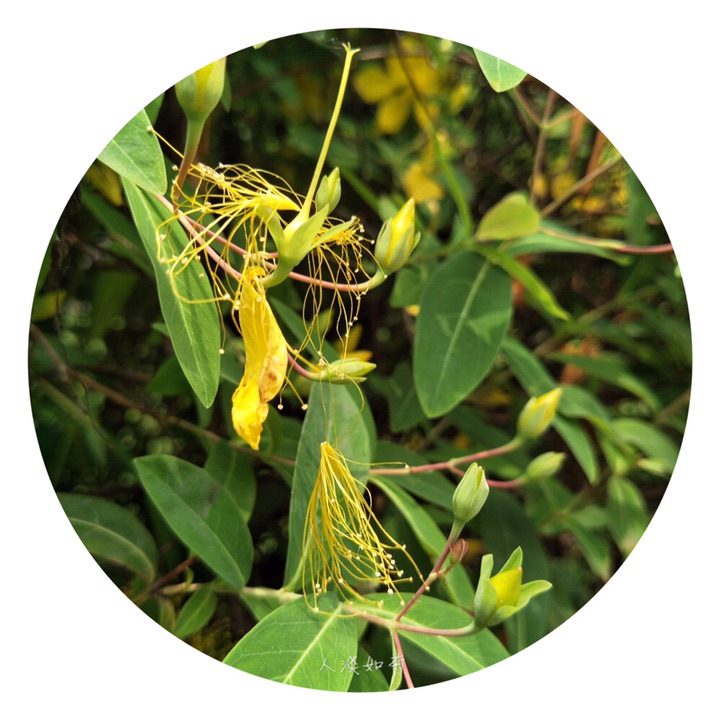 集合成聚伞花序着生在枝顶,花色金黄,其呈束状纤细的雄蕊花丝也灿若金丝。