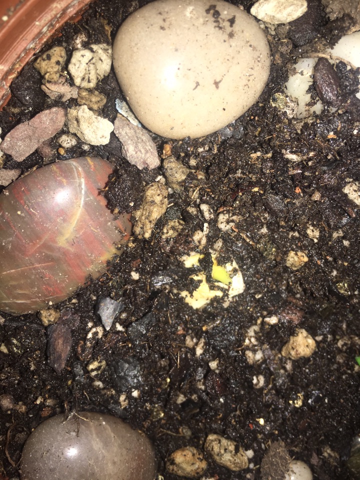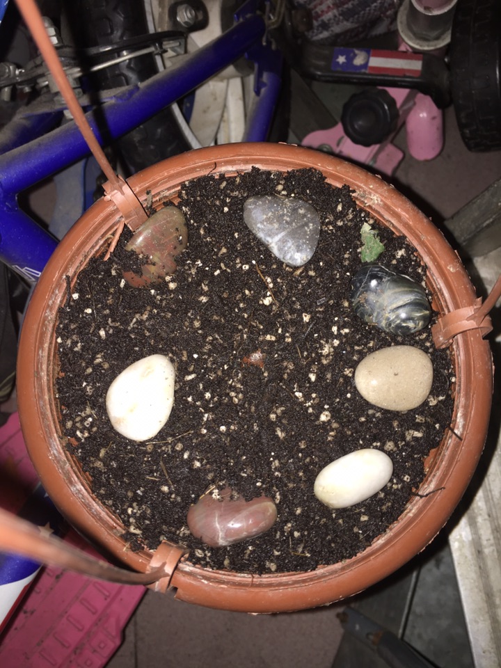:土里是郁金香旁边鹅卵石花我养滴能不知道