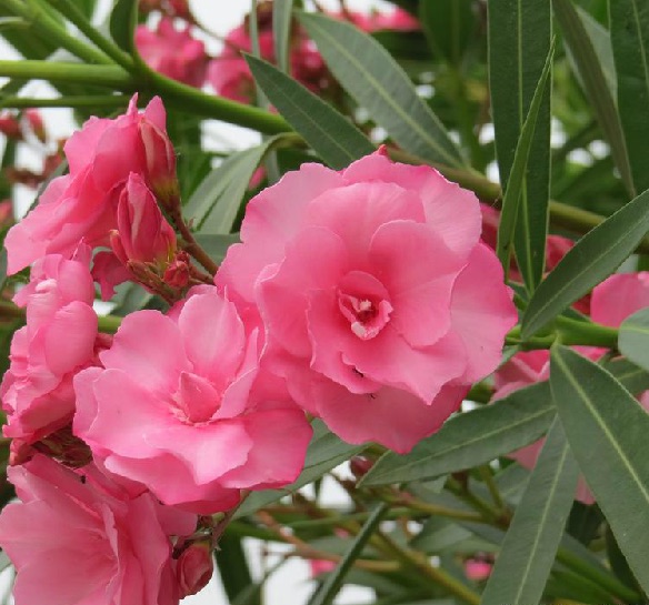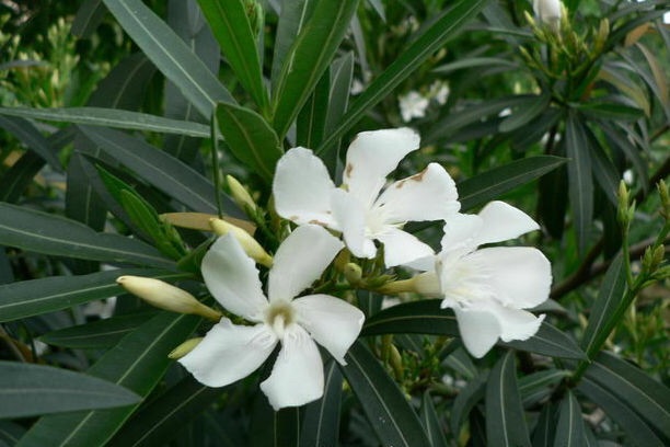 与其它植物只是枝叶或者树液具有毒性不同的是,夹竹桃的每一个部位都有毒,哪怕只是不小心吸入了一点焚烧夹竹桃产生的烟雾,也会带来不适。另外,用其树枝进行烧烤、饮用曾放置红色、粉色或白色夹竹桃花的水,都会产生中毒症状。
