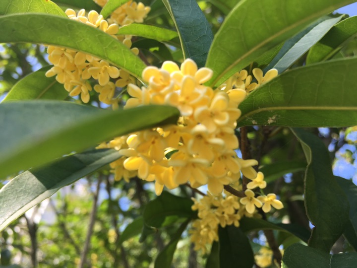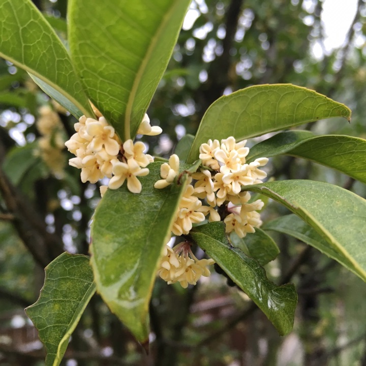 初来时,她只是一棵比小手指还细的小苗,现在已经长到手臂粗了,年年秋季花香满庭,而且还可以做糖桂花,真是眼鼻口都享她的福啊。