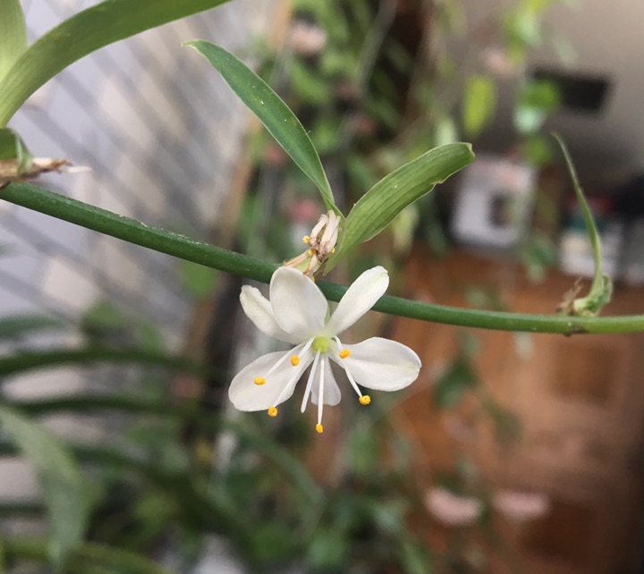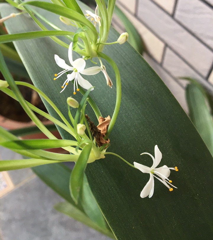 最近吊兰开了花,为了能更好地欣赏,我就把吊兰枝搭在了朱顶红的叶上,没想到很快整株朱顶红居然枯萎了!