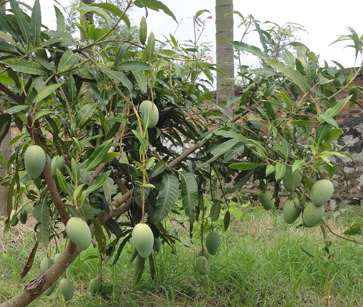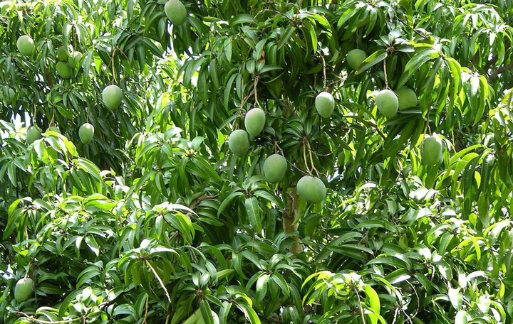 夏天,骄阳似火,芒果花谢了,结出了翠色欲滴的芒果。刚结出的芒果好似一颗颗漂亮别致的绿宝石,闻起来有一股香香的芒果味儿。