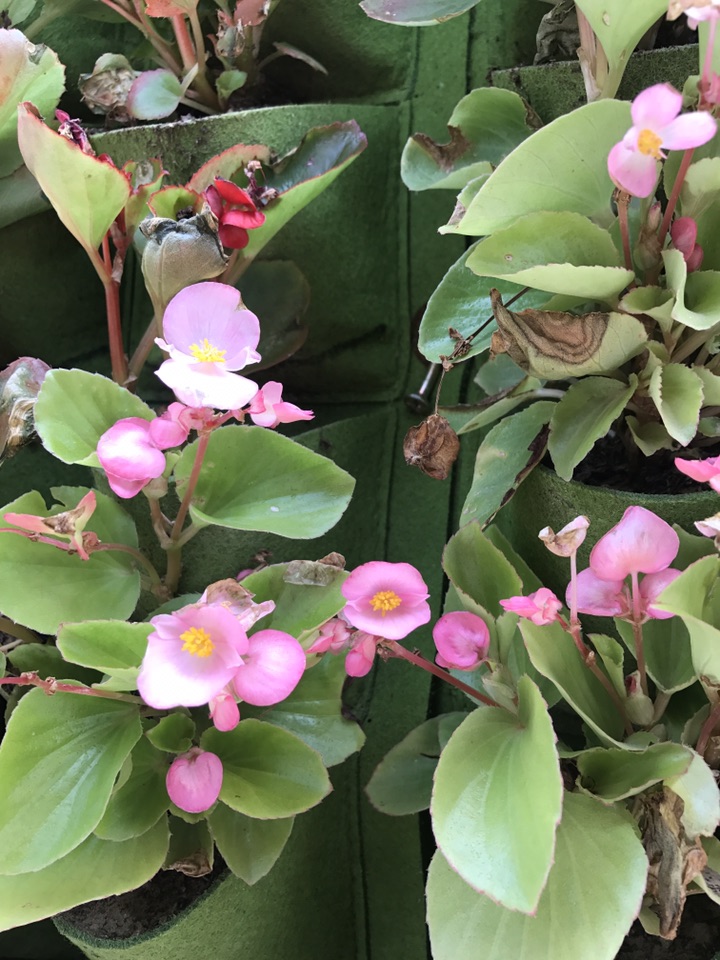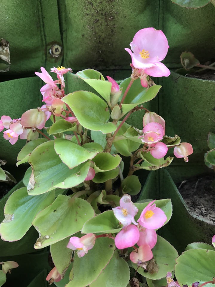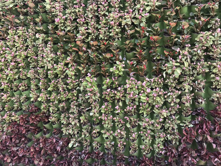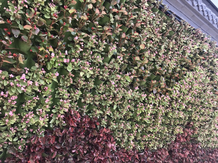 这是另外一段花墙,墙体主要由粉、红两个颜色的四季秋海棠组成。小小的花儿镶嵌在一片绿意中乖巧而精致,又是一种小家碧玉的含蓄美