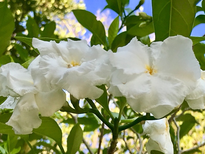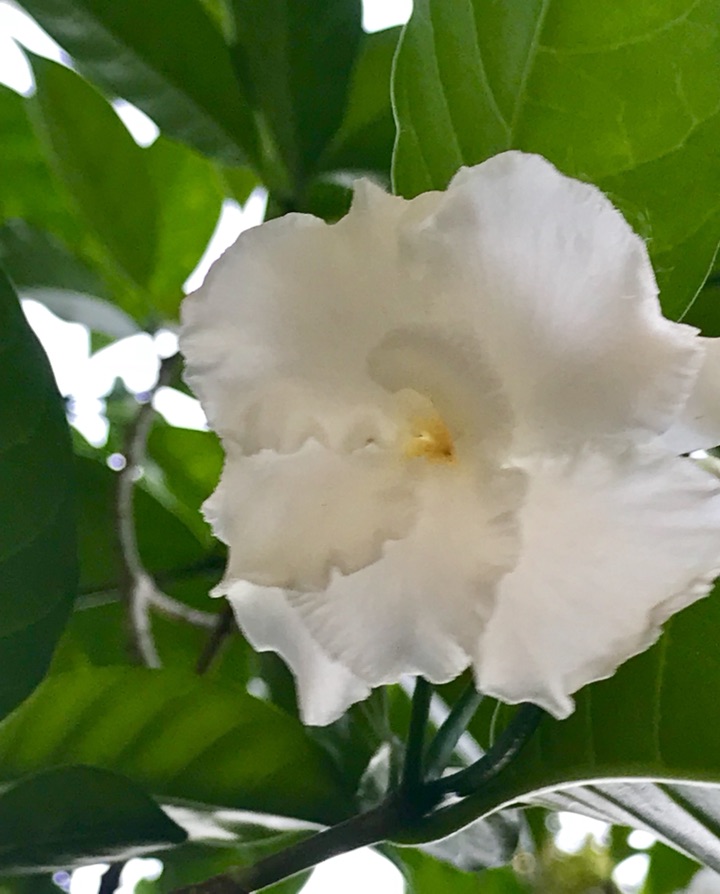 白色螺旋槳,自帶風扇送清香;小花蕾像梔子花,也梔子花一樣的香氣,明明小清新一枚,哪一點像狗牙啊,却叫狗牙花,又名白狗牙、獅子花、豆腐花。