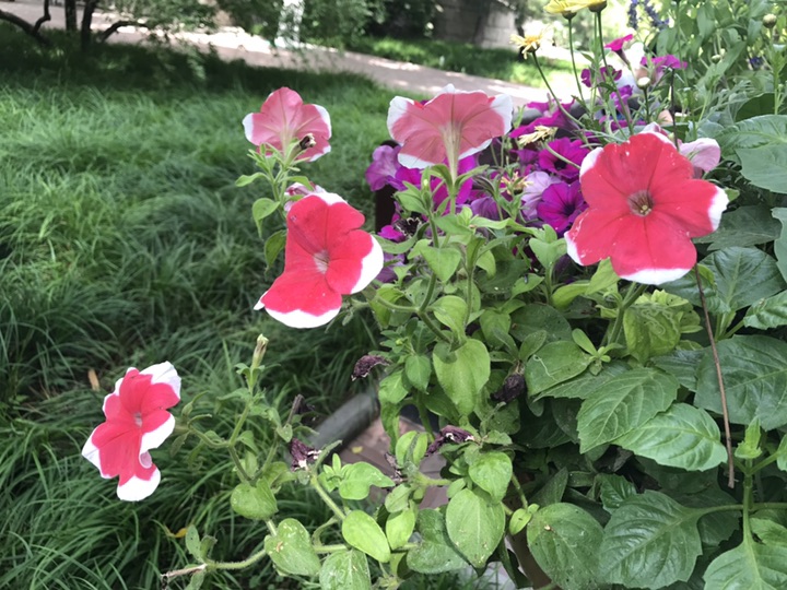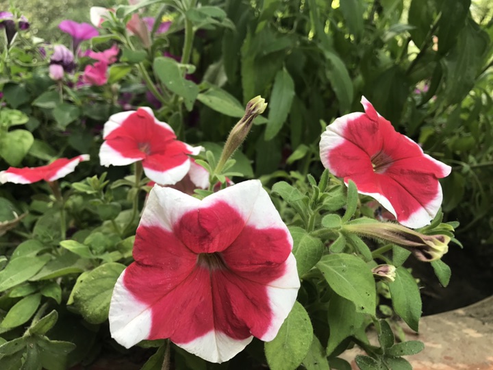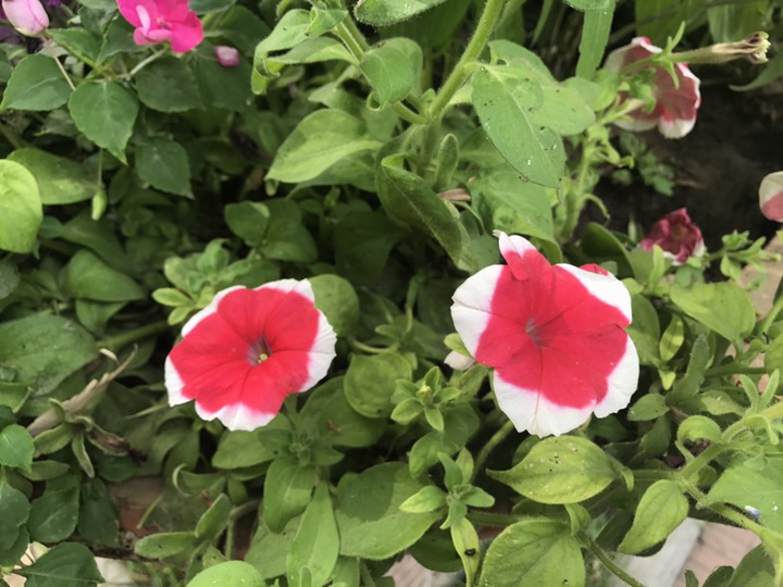 相对于单色的花儿,这个红白相间的碧冬茄看着还真是漂亮
