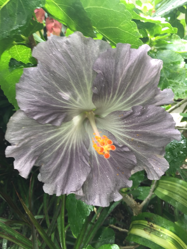 在植物园里闲逛 不经意间看到一朵花 那个颜色真是很特别 都不知怎么描述这种颜色(灰?灰黑?灰白?或者?) - 驻足观看了好半天 有点儿纳闷、好奇:为什么这朵花儿以这么一种奇怪的颜色、孤伶伶地开在那儿?真的,她和周围的一切都不搭嘎...