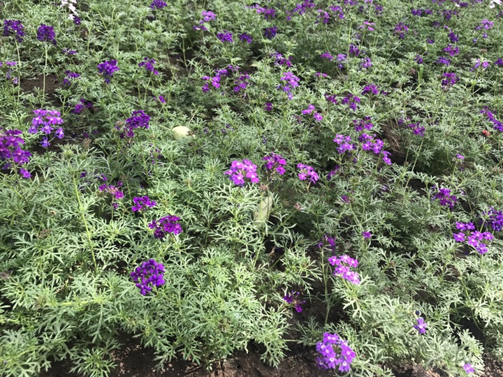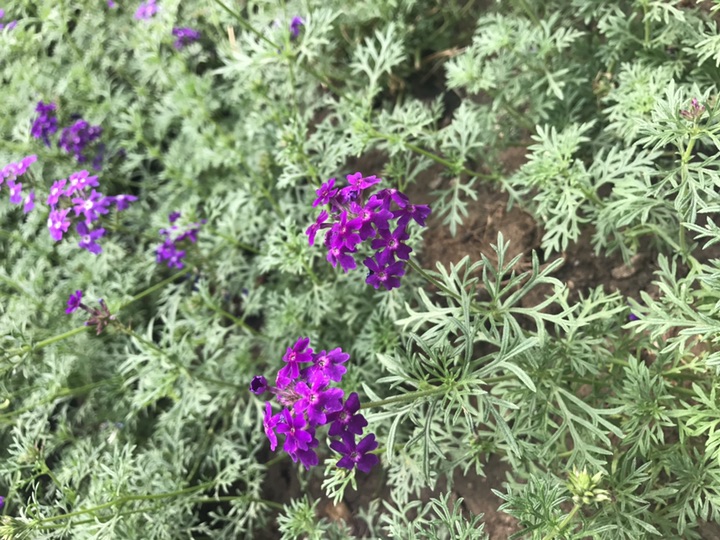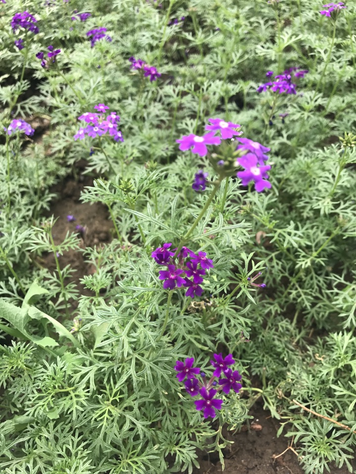 细叶美女樱(Verbena tenera Spreng.):也称羽叶马鞭草,马鞭草科马鞭草属一种多年生草本花卉,也可作一二年生栽培,原产于巴西、秘鲁和乌拉圭等美洲热带地区。