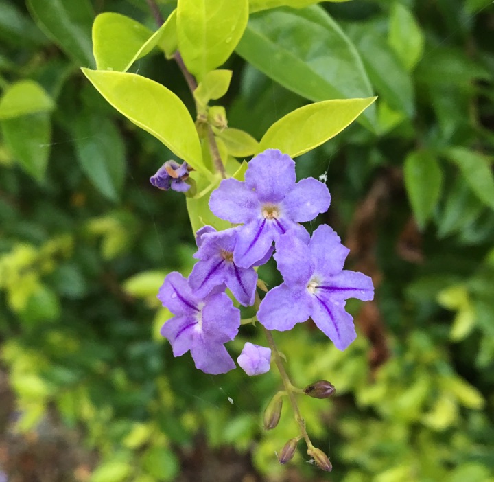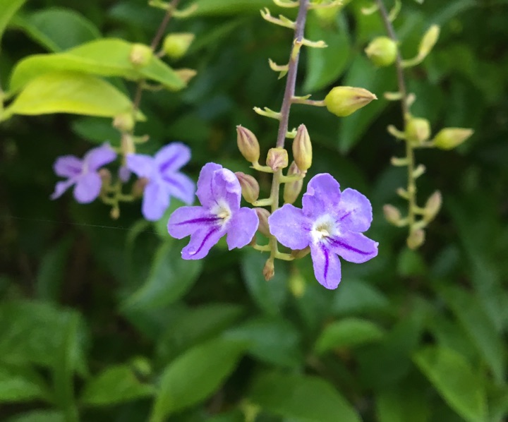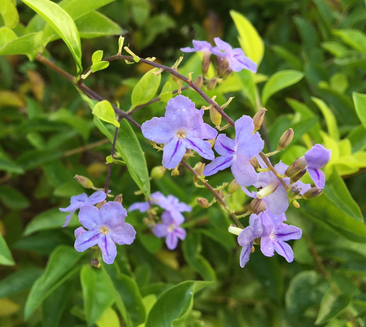 查形色才知道花名叫假连翘,继而也就有了困惑,花色、花型和连翘相去甚远,怎么就叫了这个名字呢?