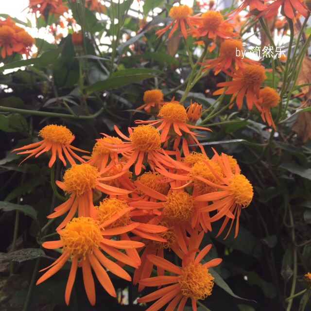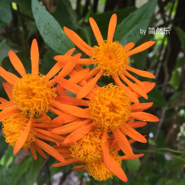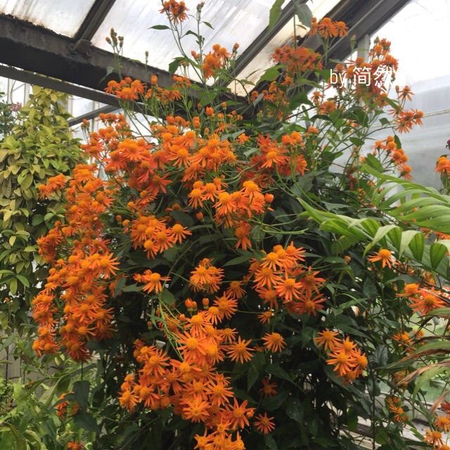 这个橘黄色的花儿是菊科千里光属常绿蔓藤植物,别名又叫墨西哥火焰藤、蔓黄金菊、黄花蔓菊、火焰藤等。肉质箭头状绿叶,金黄色菊花,外面一圈的长舌形花瓣下垂,里面的花蕊很有特色:大大的、很显眼