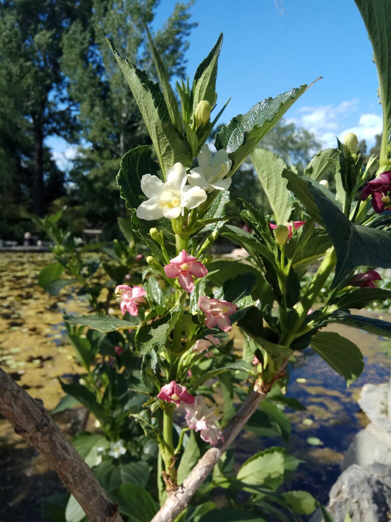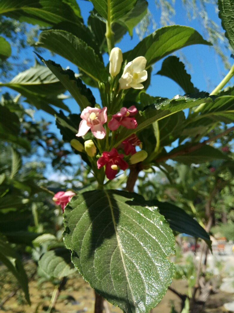 海仙花,也叫五色海棠,锦带花属。与普通锦带花不同的是一束花上会有超过两种颜色。而且植株相当高大挺拔。