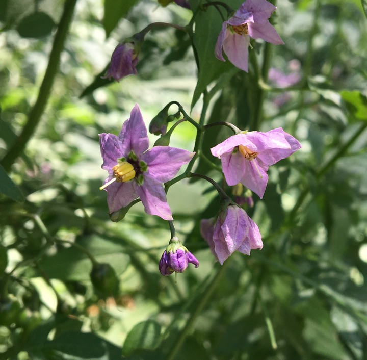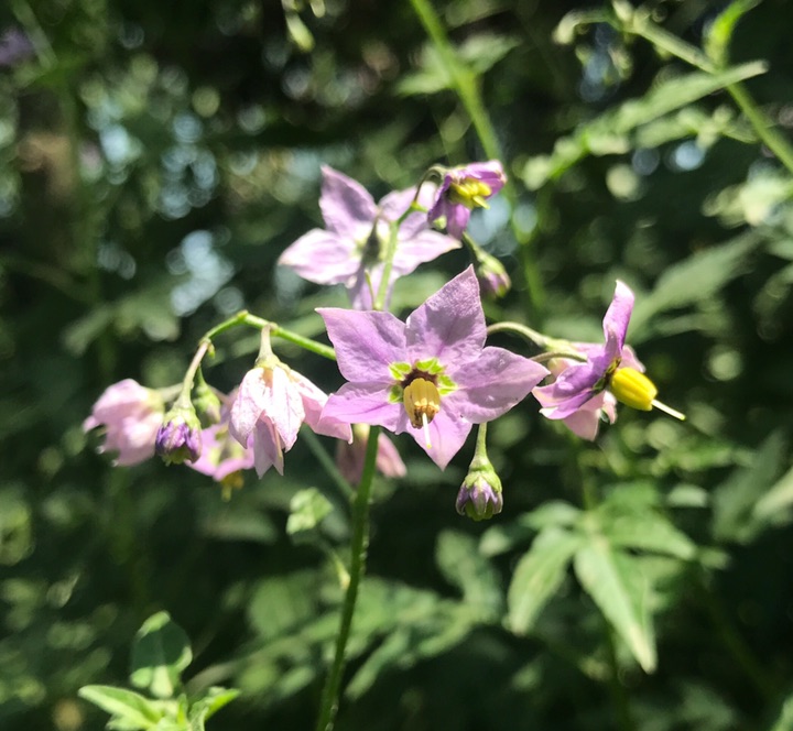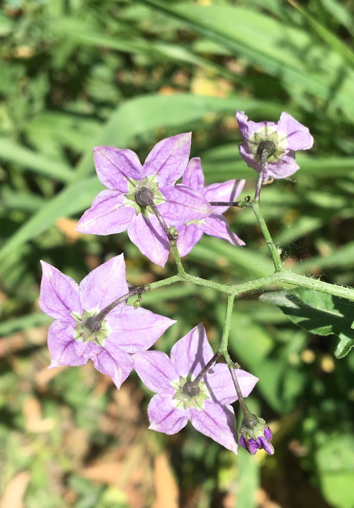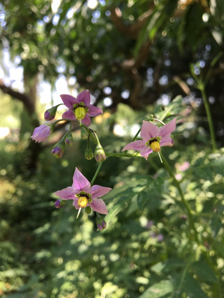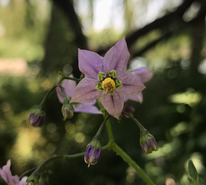 又收获一种花,花瓣淡紫、五角形, 花芯有绿黄两种颜色,有层次感,花名青杞。