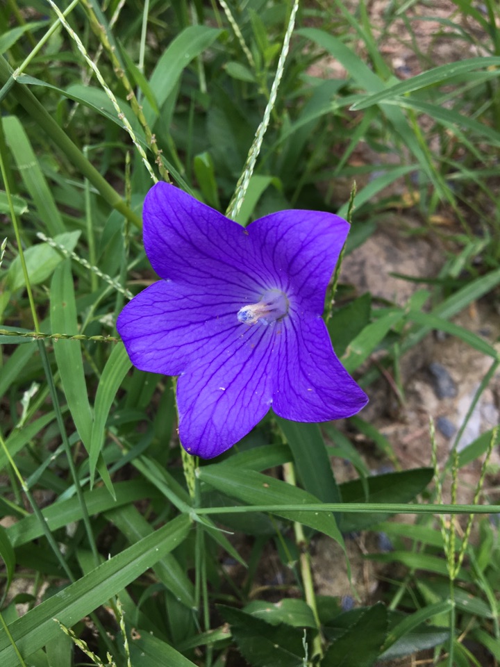 这是去年在曹雪芹故居花园拍到的,也是五角形, 也是迷人的蓝,当时查形色说是桔梗,有些诧异,因为我一直觉得桔梗是泡菜的一种,没想到长这么漂亮。😂😋