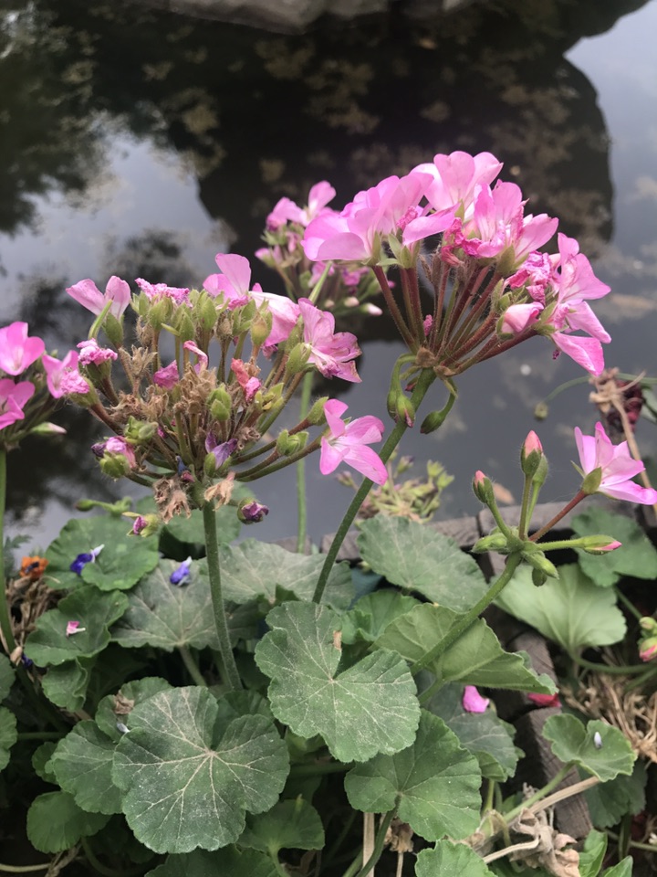 从一圈中挑了这么几张天竺葵出来,不是说它分外好看,而是无意中发现这种临水照花的感觉特别好。早知道就多拍几张了,也不至于单单一个天竺葵这么平淡了