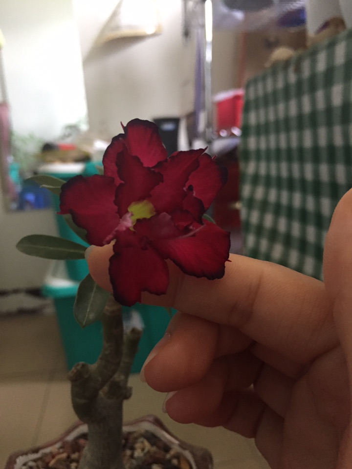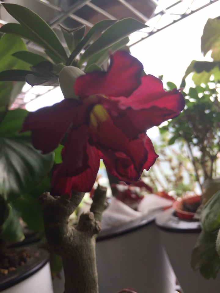 沙漠玫瑰,第一次养开花,大气沉稳的紫红色,重瓣的,据说都是嫁接。美得别致,不问出身啦。