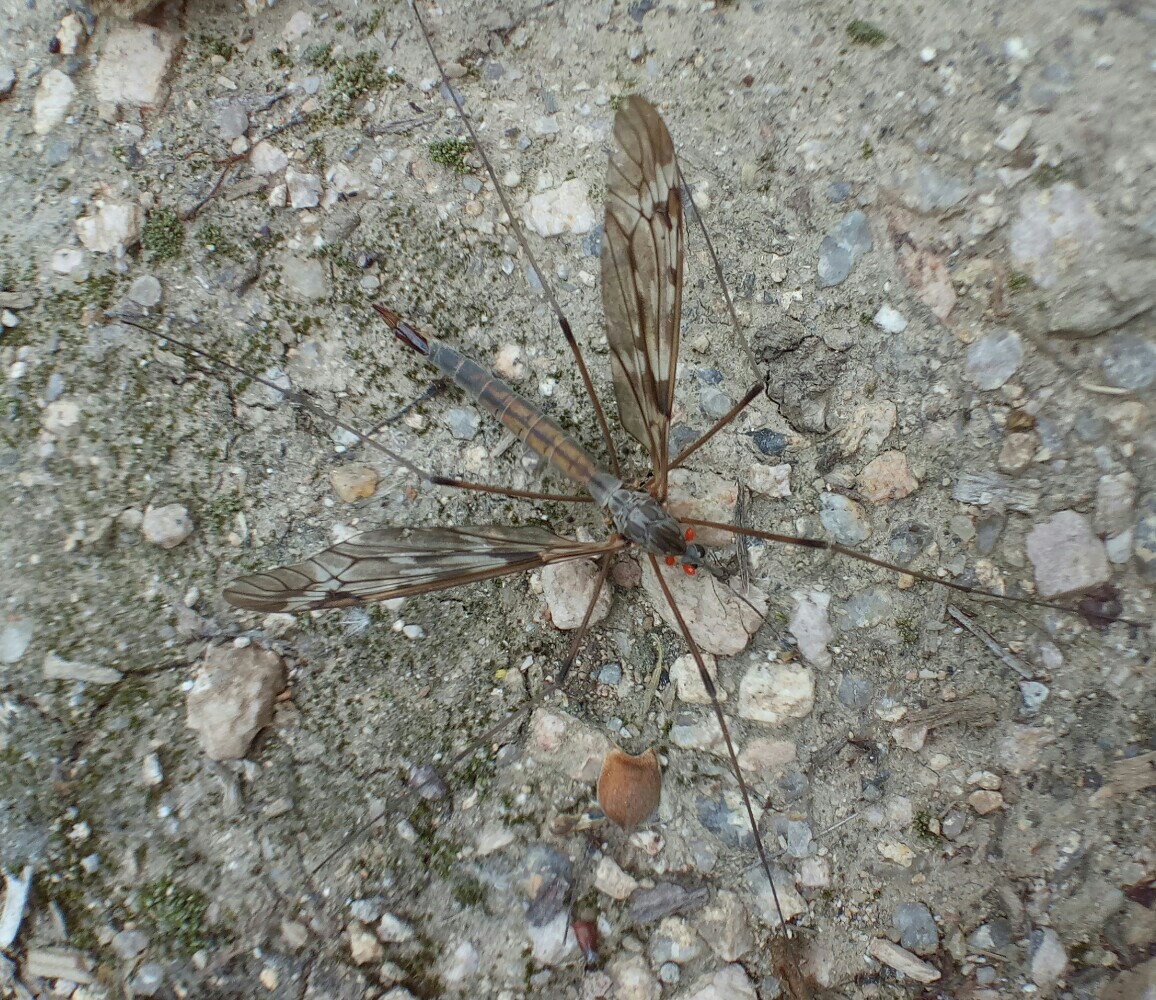 只是不知道它是什么,小伙伴们说是大蚊子,只吸花蜜不咬人的蚊子,也不知道那三个红色的是它的什么器官。朋友们,你们说呢?