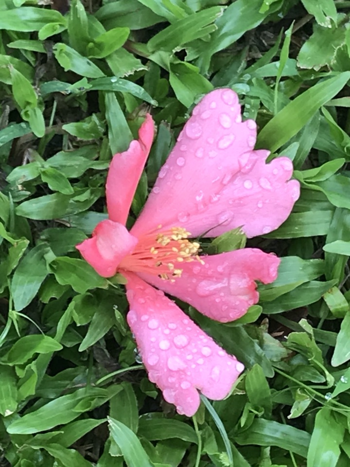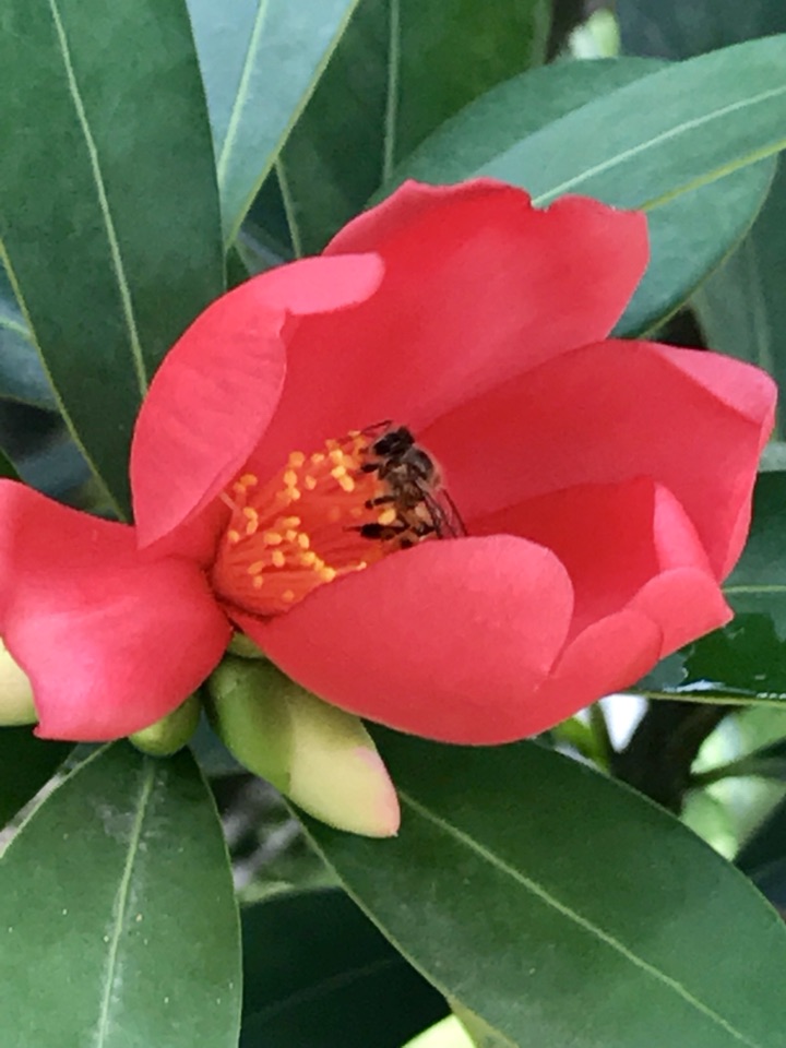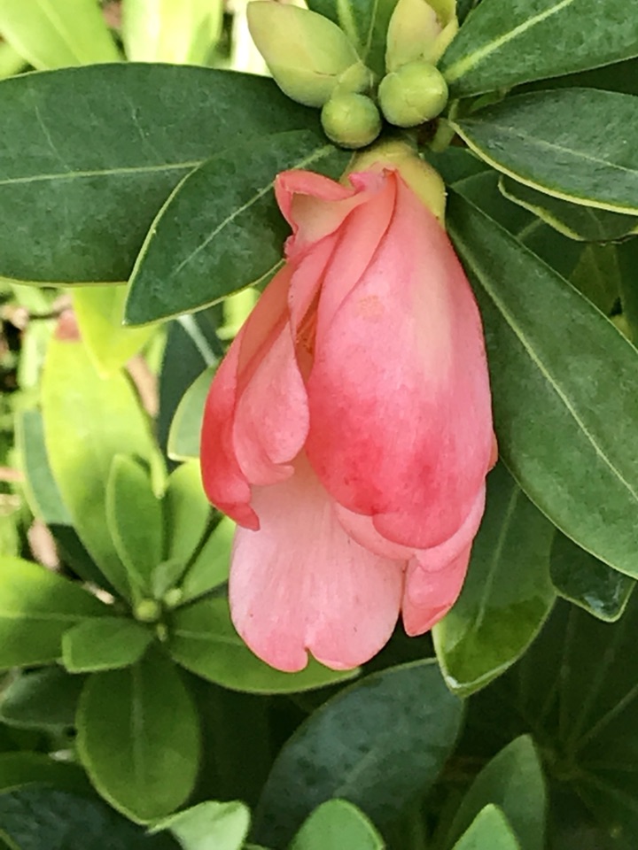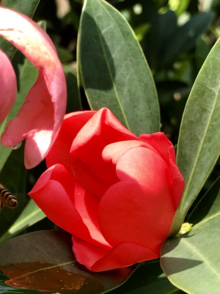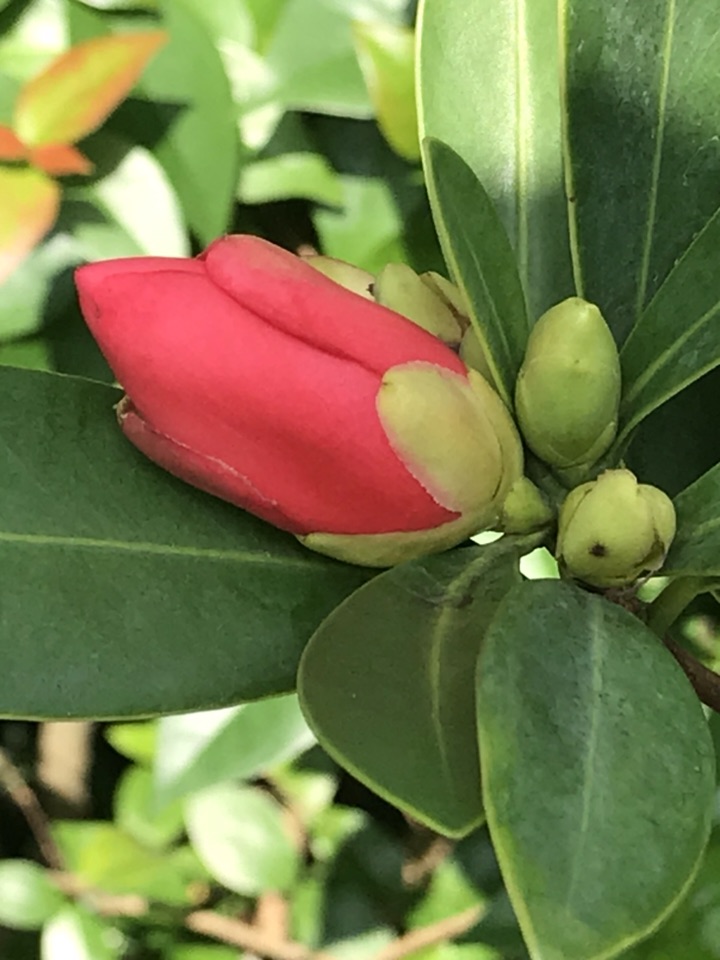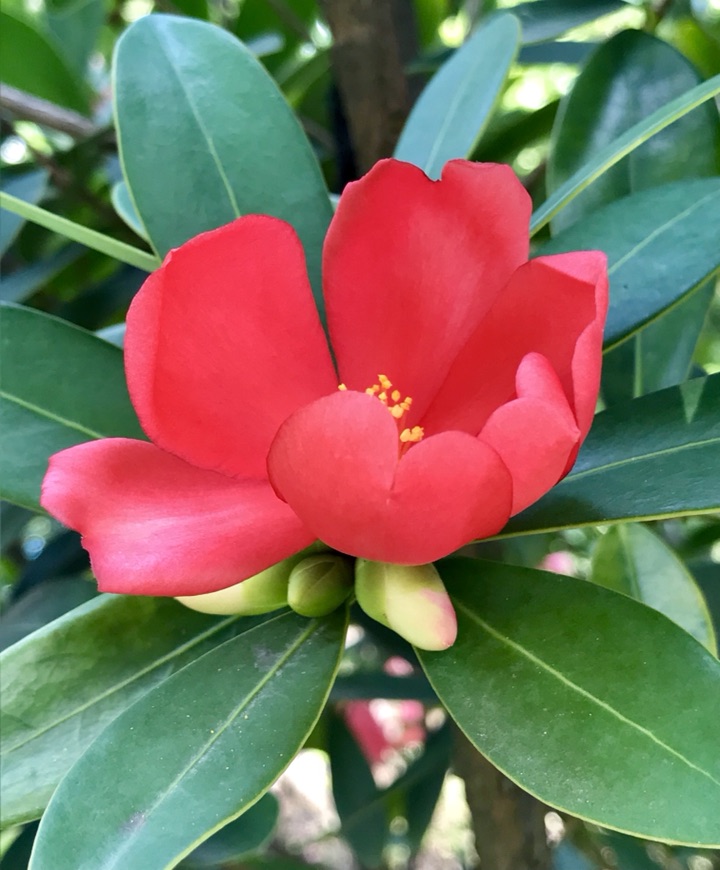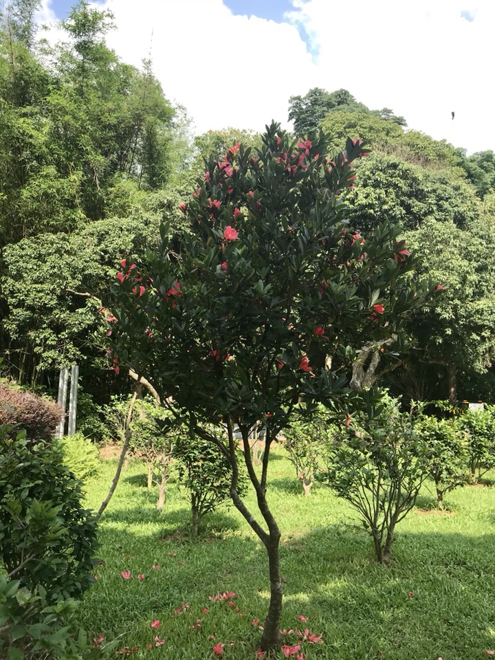 杜鹃红山茶,花似山茶叶像杜鹃,生长极其缓慢,为国家一级保护植物,有“植物大熊猫”之称,曾經一度差点灭絕,是名贵木本花卉品种。野外物种现只剩近千株,已被《中国物种红色名录》列为极危种。