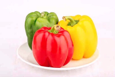 甜椒俗称灯笼椒、柿子椒、甜椒,台湾话也称作大筒仔,是茄科辣椒属辣椒的一个变种,分布于中国大陆的南北各地,属于“非人工引种栽培”类型植物。含丰富维他命C和B及胡萝卜素为强抗氧化剂,可抗白内障、心脏病和癌症。像葡萄一样,一个甜椒样品就包含15种不同的农药残余物