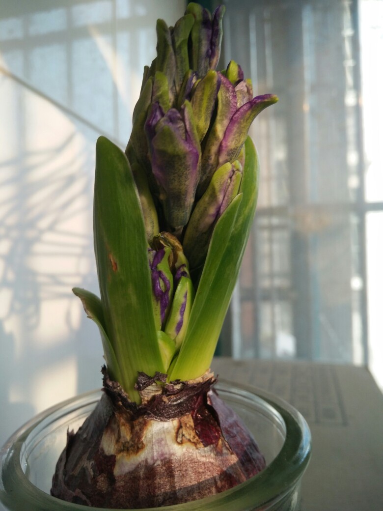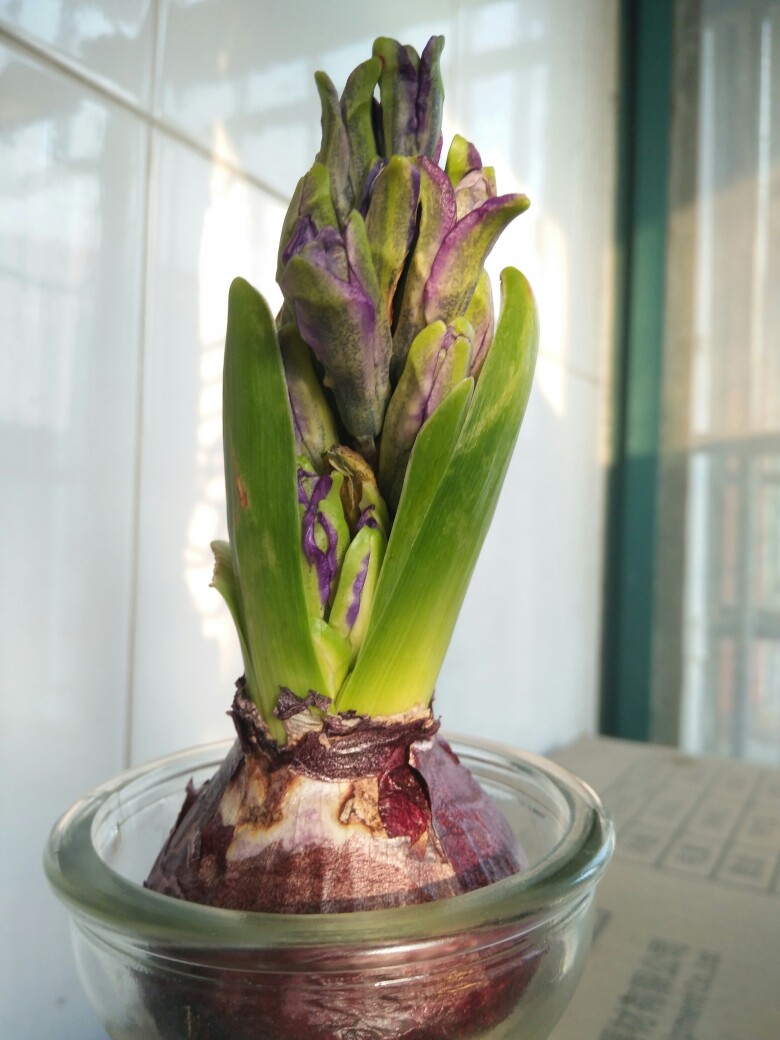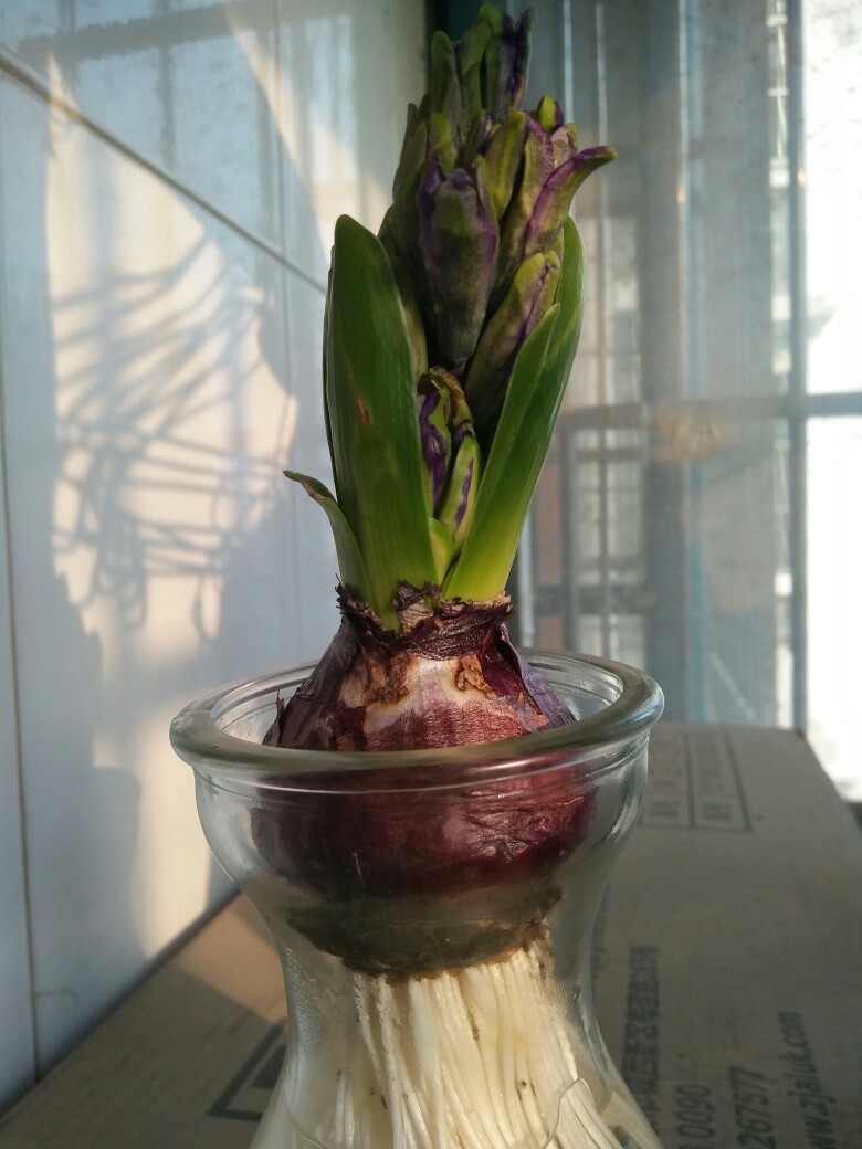 我滴风信子啊,你要开了,老板没有骗我,真的是蓝花,其实我感觉这个像紫色,你们说呢(往后看,后面还有字)