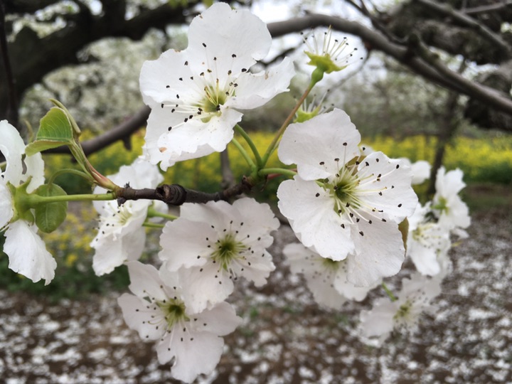 记忆中的梨花美是孔融让梨,花儿对我笑,小鸟说早早早。现在是人美花美招蜂引蝶,