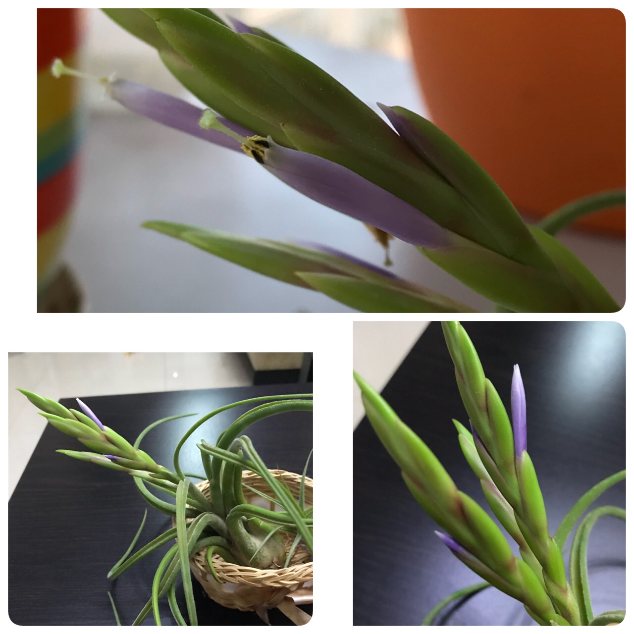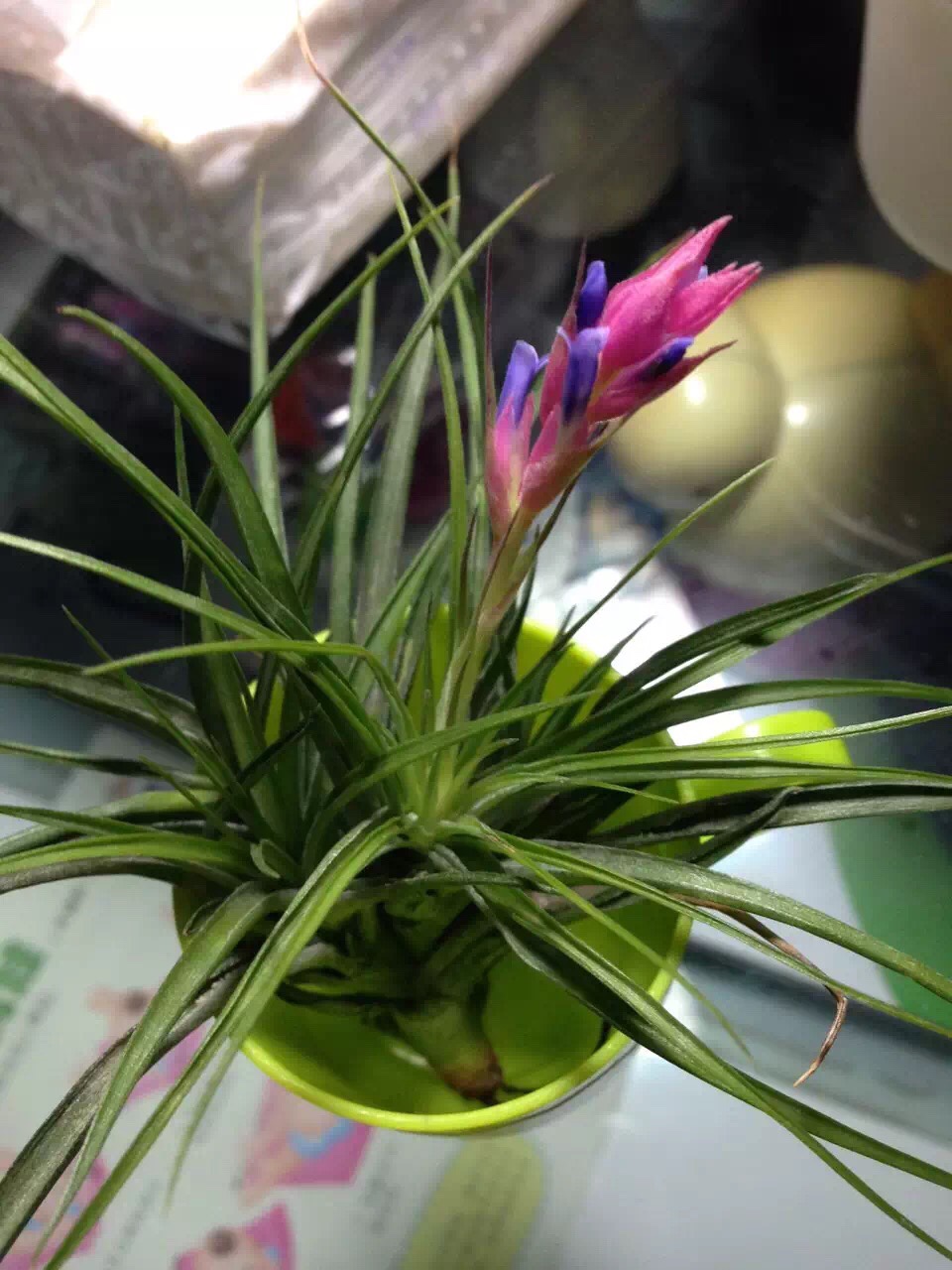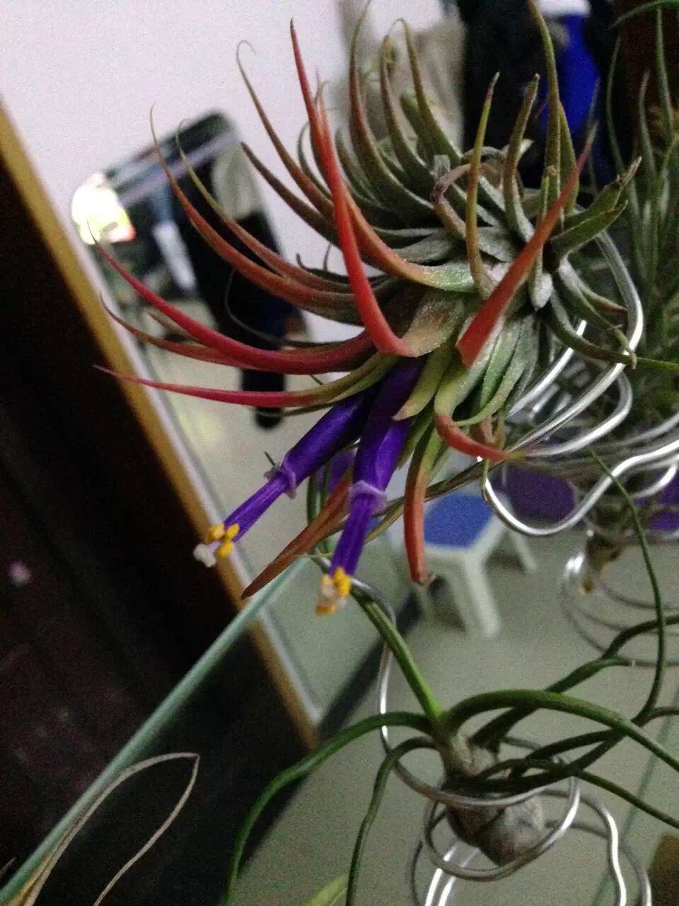 养了三年的空气凤梨,除了第一年有两棵开花外,这两年都没有动静,已经不报希望了,今年春天突然发现意外惊喜,于是等啊等,漫长的3个月啊终于开花啦.....