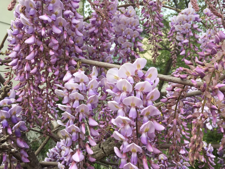 自从读过宗璞的紫藤萝瀑布,紫藤小小的花瓣在我的心里便再也挥之不去了。那深深浅浅的紫色,那淡雅的清香,那盘虬卧龙般的枝干,那一片闪着辉煌紫光的海洋 ,怎么能忘记?