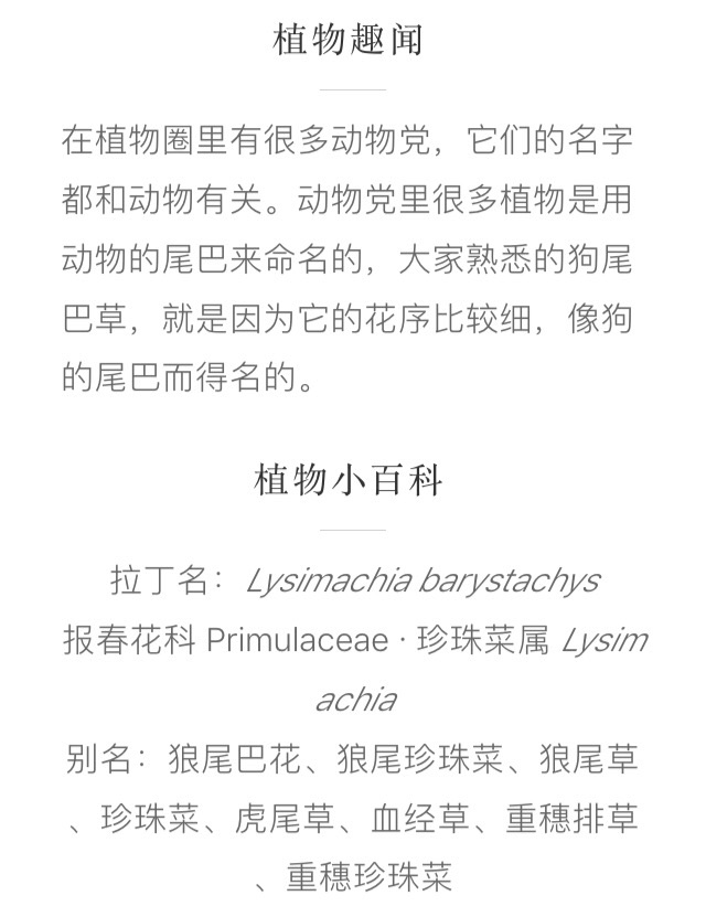后来点开狼尾花的介绍发现,它和珍珠菜的介绍里用的图案居然一样!而且,狼尾花又被称为狼尾珍珠菜或者直接被称为珍珠菜,狼尾花就是珍珠菜属的,原来如此!