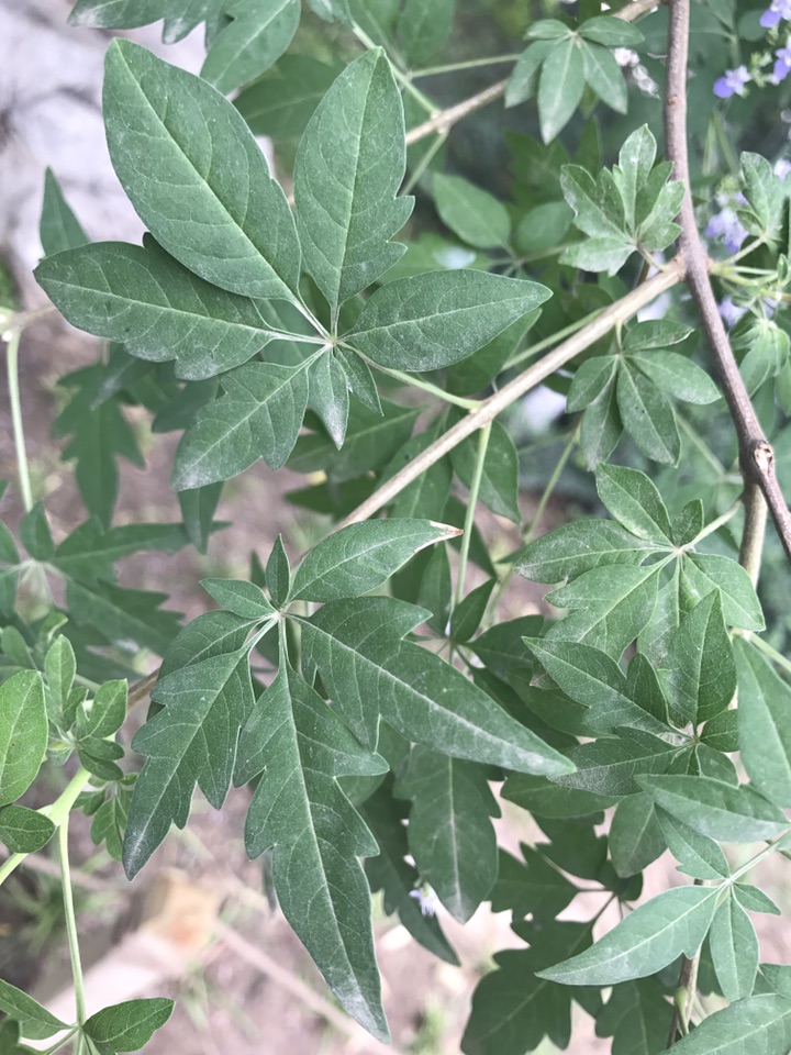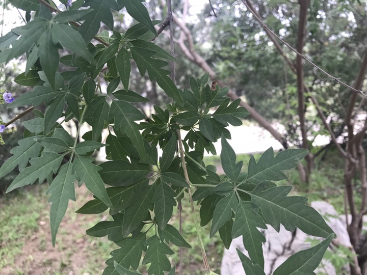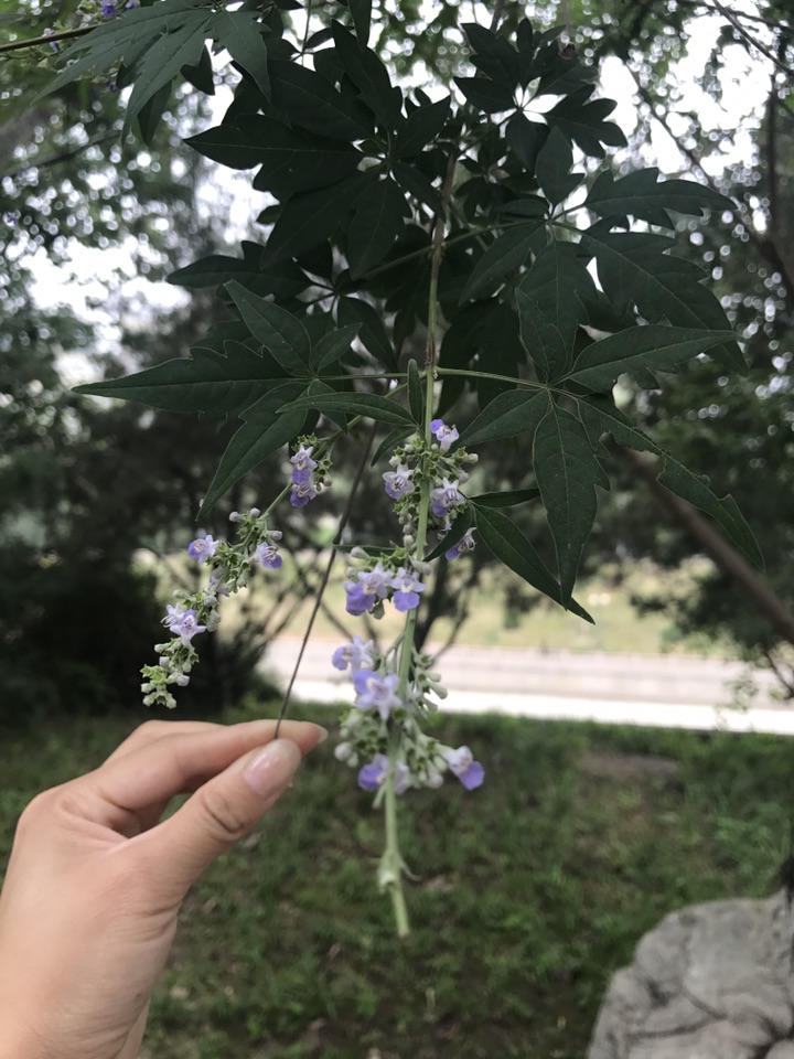 黄荆柴、 黄金子、 秧青。其叶子印象中记得一般都是5片,可这个好多我都看到了7片叶子。虽说那两片小的出奇,可也是完整的叶子不是。花淡紫色,着生于当年生枝端,花期6~7月。不要小看了这花喔,不知道吧?荆条蜜是荆条花蜂蜜的简称,也叫荆花蜜,是四大名蜜之一(荆条蜜、枣花蜜、槐花蜜、荔枝蜜)具止咳润肺、健胃通便、防暑清心,并有补身益气、延年益寿之功效。