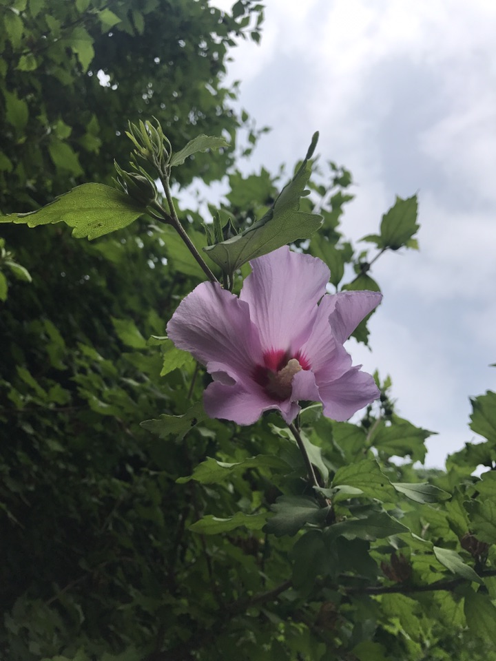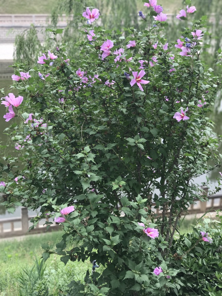去年荷花开得正盛,她也不甘落后;今荷花寥寥未到花期,她也只繁华一树,从容应景!这是一株隔着铁丝网的满树繁花的树,我只能就着网洞小心的拍下一张全景,想要给她来个特写是绝无可能的。在荷花池的旁边,也有一棵朱瑾先感受到了夏的召唤,缓缓的吐出几朵嫣红淡紫,可也由于太高没法儿给她写真定格,好容易拍了2张虽不甚满意,可也疲于修饰。就这么的吧,记住它的本真,记住天空的原本样子。