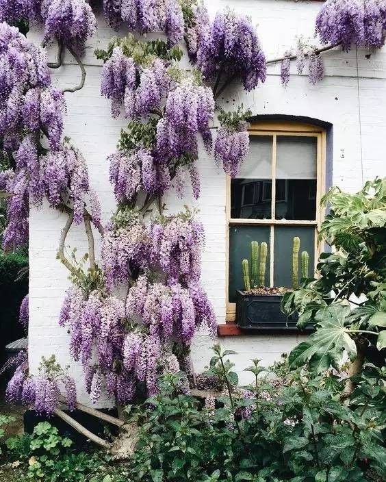 不过不怒目,大概也舍不得踩它,紫藤实在是太美了呀,藤花浪拂,似瀑如雨,单说名字,一“紫”一“藤”,简直不能更“象形”,“花开为紫,茎绕为藤”。古人写《花经》,描述它是,“缘木而上,条蔓纤结,与树连理,瞻彼屈曲蜿蜒之伏,有若蛟龙出没于波涛间。”别名也都美,藤萝、朱藤、招藤,值得一提的是,因为紫藤属植物不止是紫藤,而其中紫藤的近亲白花藤萝和藤萝,花色就分别为白色和青绿色,这或许是别名“藤萝”的由来吧。