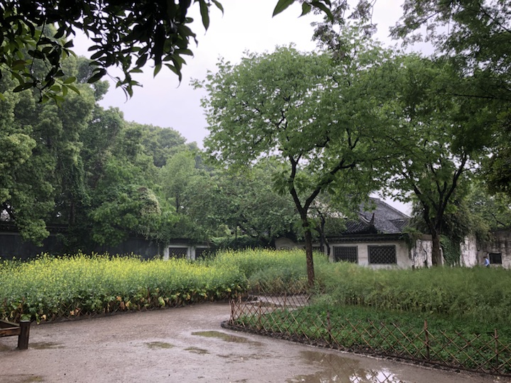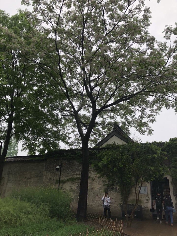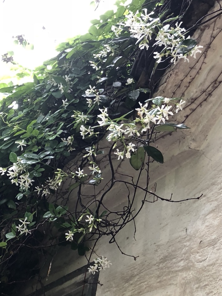 爬满山墙的络石,风车般的白花飘着淡淡的清香