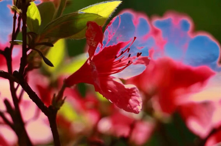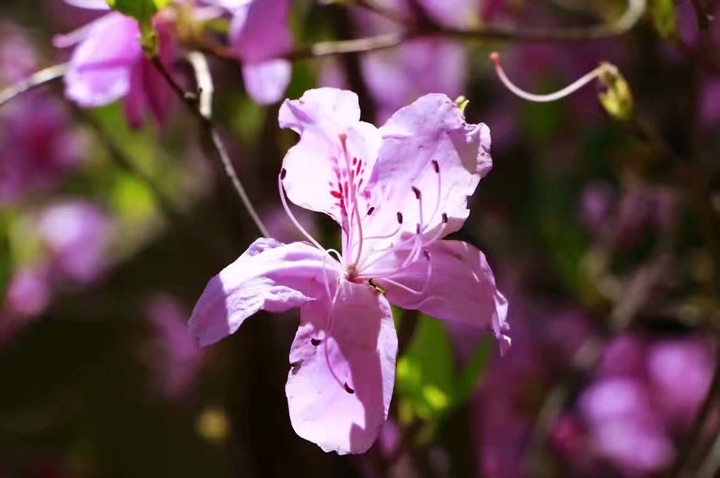 杜鹃花别名映山红,它被叫做花中西施。当春季杜鹃花开放时,满山鲜艳就象彩霞映照在整座山上。