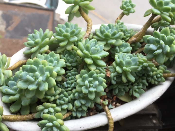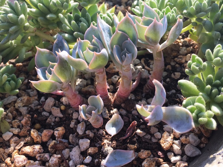 黑腐路上拽回来的蓝石莲。因为旁边的春上长得太满,把它围住导致不通风。果断剪掉几个春上。