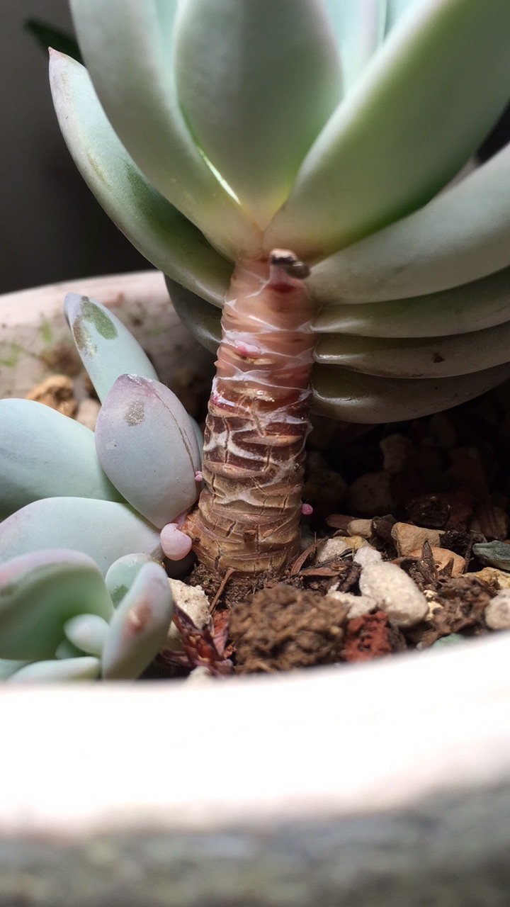 凝脂莲。这家伙长得太密,很担心夏天黑腐。天气渐热,雨水又勤,多肉纷纷脆弱起来。一淋雨一日晒,蒸得杆子与根部一夜之间黑腐给你看。