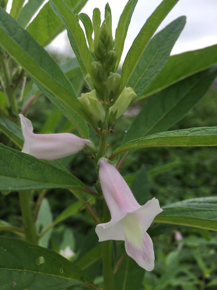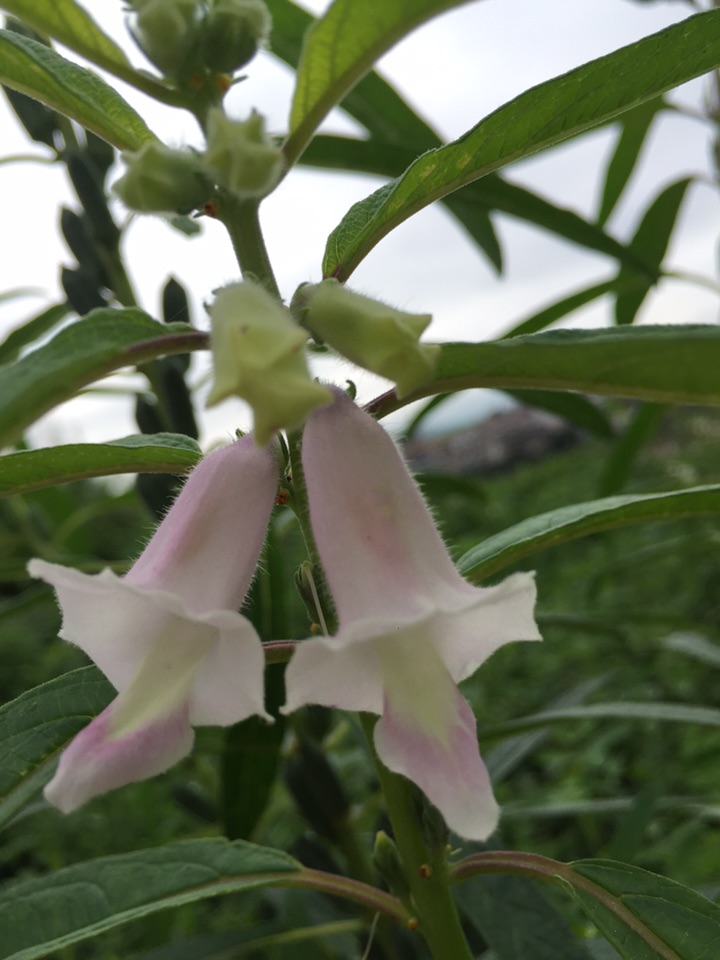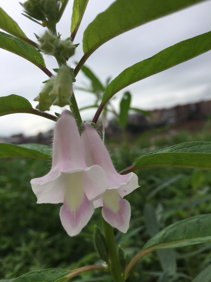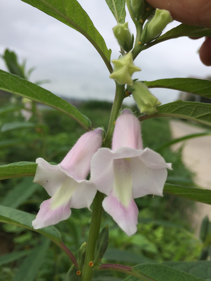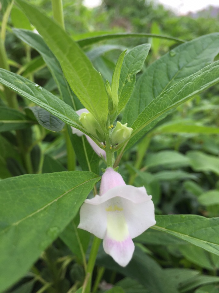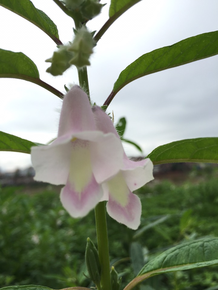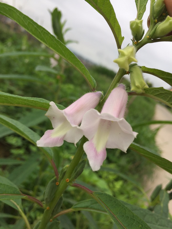 以前只在书本上读过"芝麻开花节节高"的句子,今天散步河堤,发现路边的菜地里竟栽种有芝麻,而且已经开花了,真是愉悦之至。