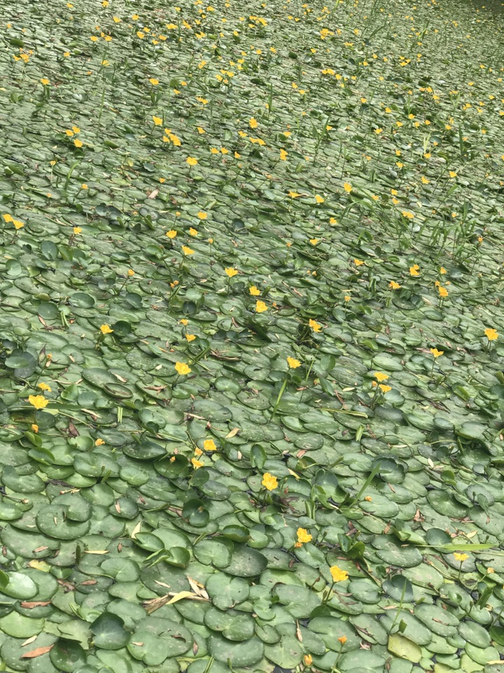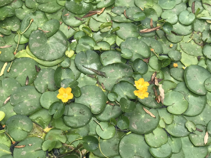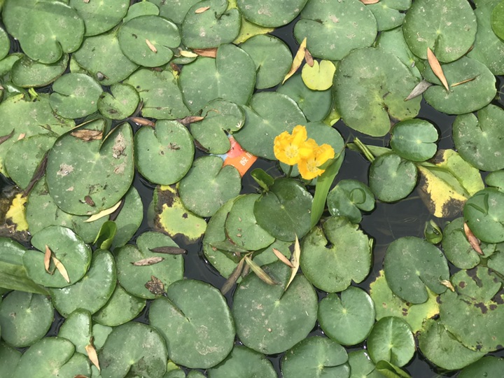 老远便看到水中片片圆叶漂在水面,若干亮黄色的花点缀其中。鹅黄色的花瓣上有着细碎蕾丝般花边,明亮而别致。《诗经·关雎》中有云“关关雎鸠,在河之洲。窈窕淑女,君子好逑。参差荇菜,左右流之。窈窕淑女,寤寐求之。”其中描写的荇菜就为此物,寓意爱情的浪漫之花!