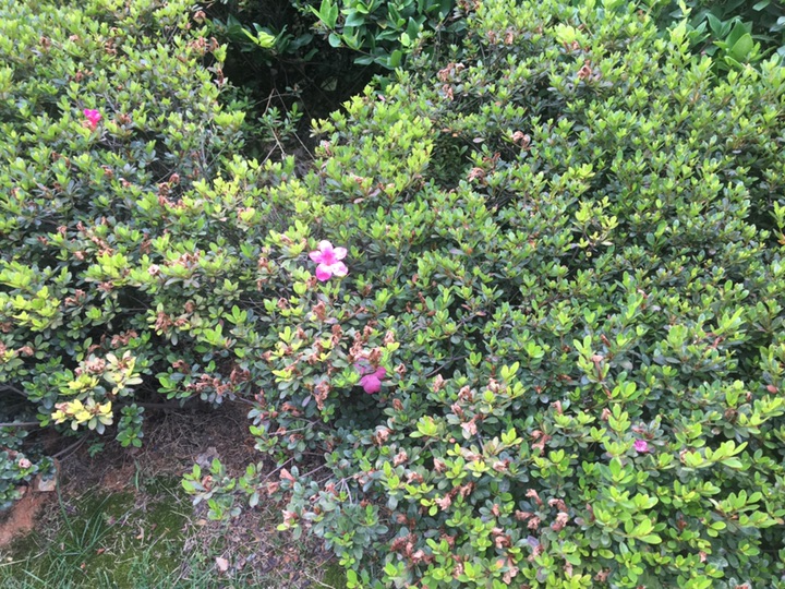 小时候觉得被剪得平平整整的隔离墙都是用的冬青,前些日子陆续发现灰莉、金叶女贞、假连翘、六道木、红花檵木也都被用来做隔离墙,最近在杭州,我又发现,杜鹃也加入了隔离墙的队伍。