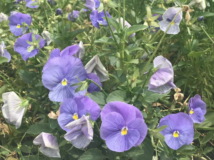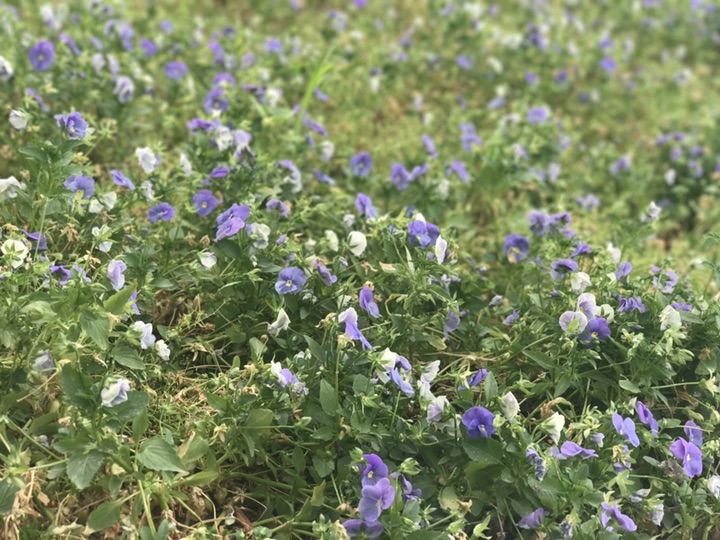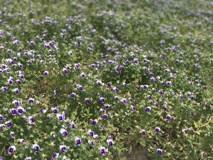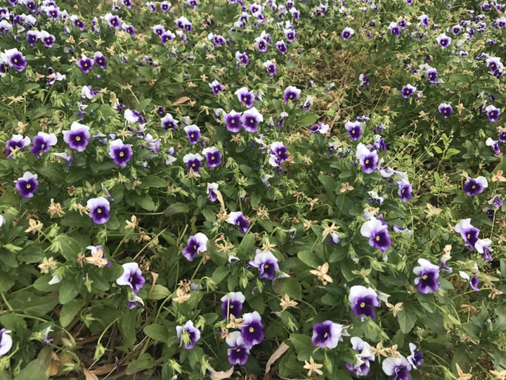 靠近中华名亭园的那条主导上,全都布满各种颜色的小花花。一片一片的,错落有致。可看来看去还是角堇最出彩,淡淡的颜色给炎炎夏日带来一丝清凉。