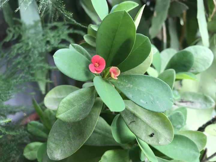 这花却像是不怕热一般的开着,开的虽说不多,可却生机盎然,很多植物在烈日的炙烤下都耷拉下了脑袋,独她顶着小小的身躯站成了一道风景,看这小小的红花在绿叶中斑驳点缀也是很抢眼的好不?