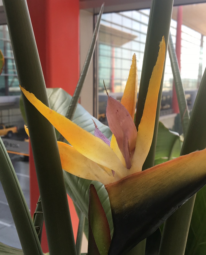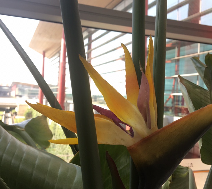 北京T3D偶遇鹤望兰,淡黄色的花瓣中夹着两片淡紫的花芯,比通常深色鹤望兰的艳丽多了些素雅。