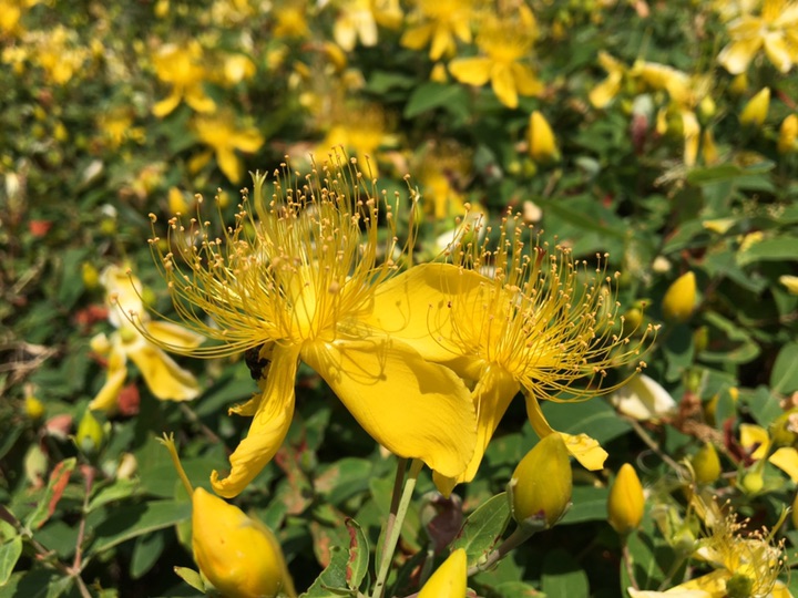 第一次见金丝桃是在田湾,中午休息的时候在客户办公大楼前散步,有幸发现了石竹和金丝桃。