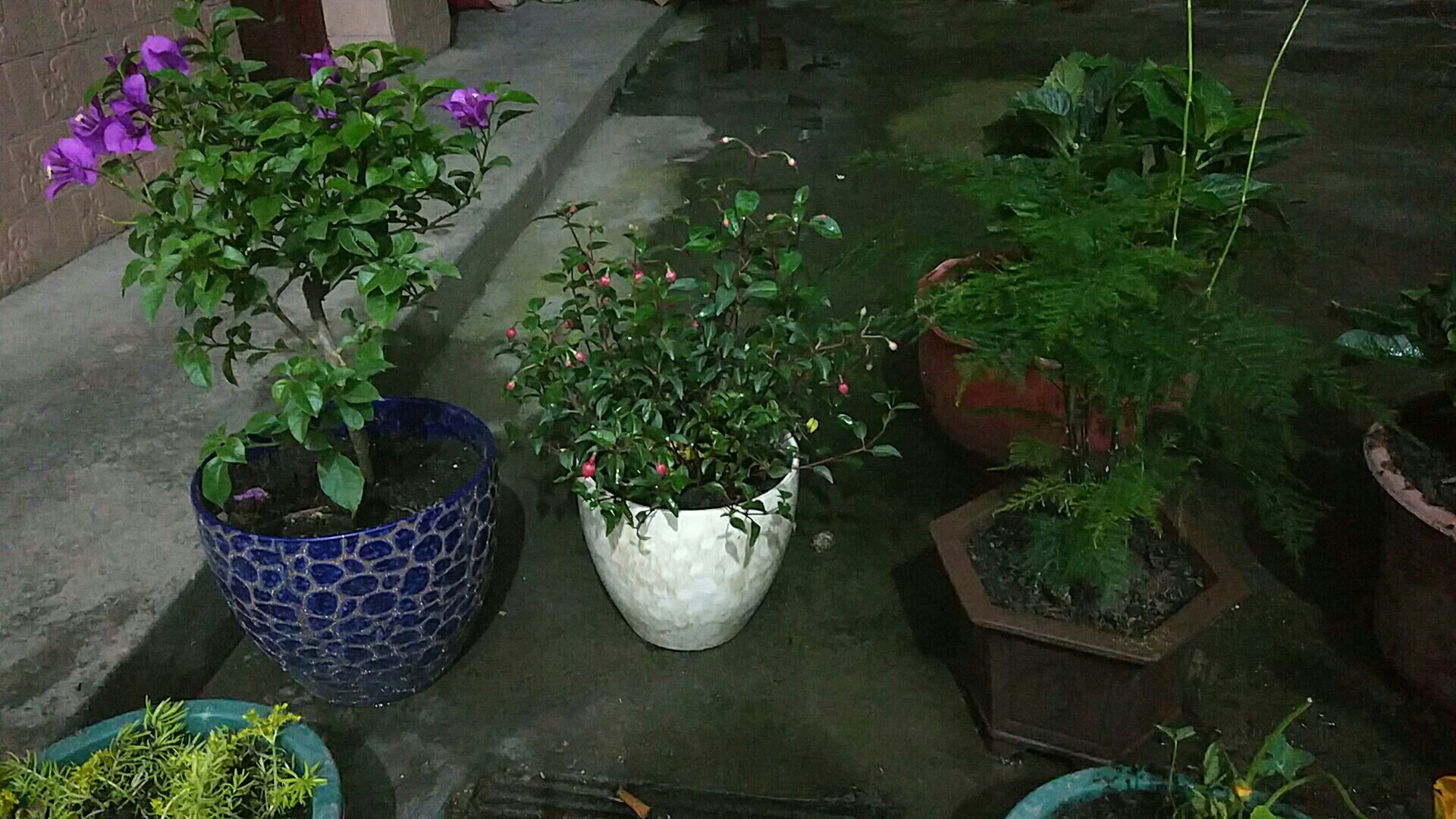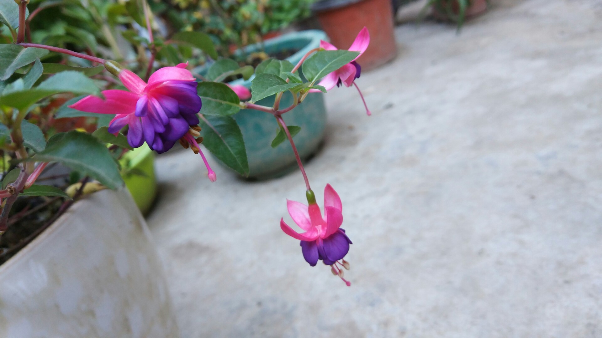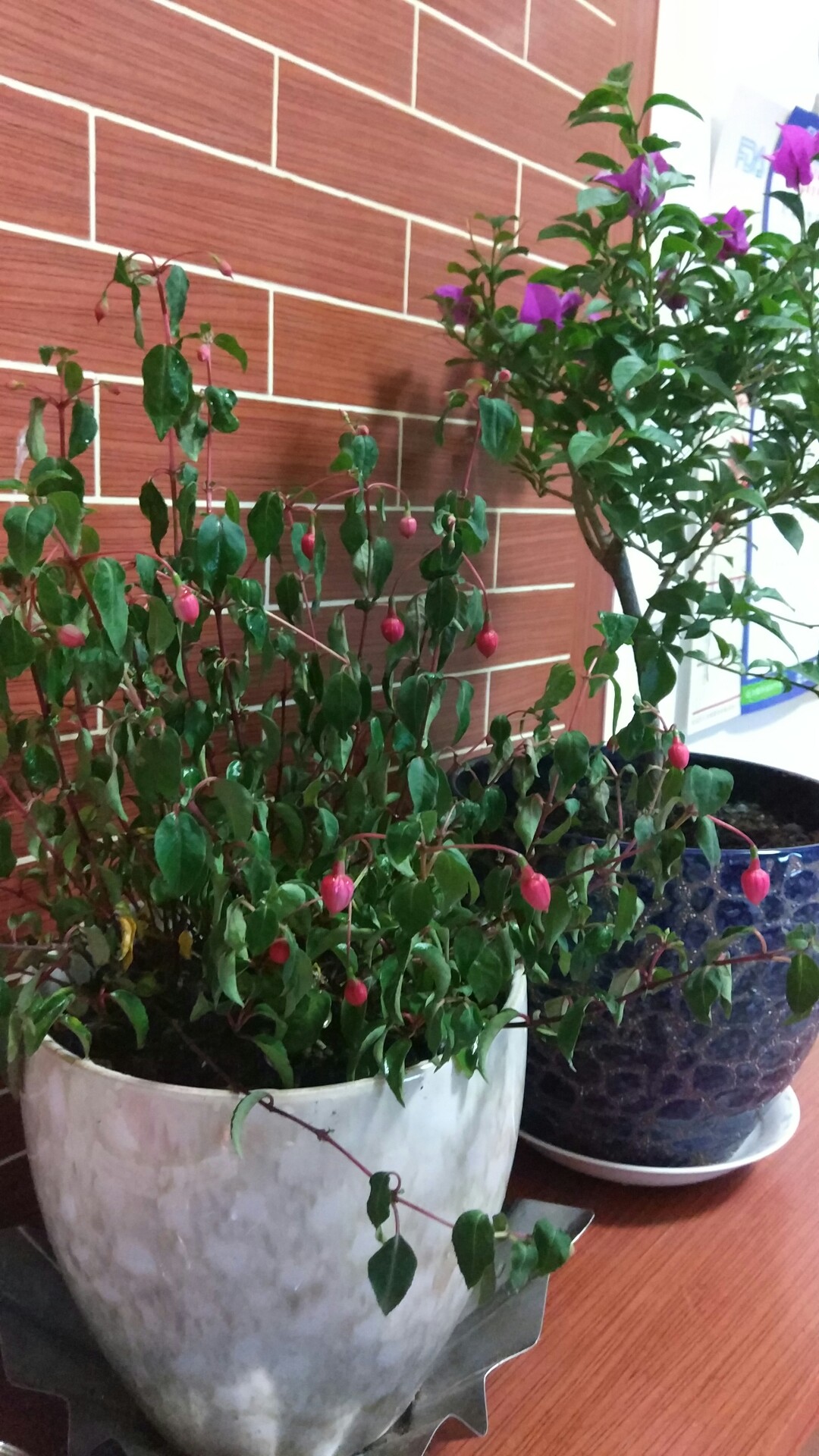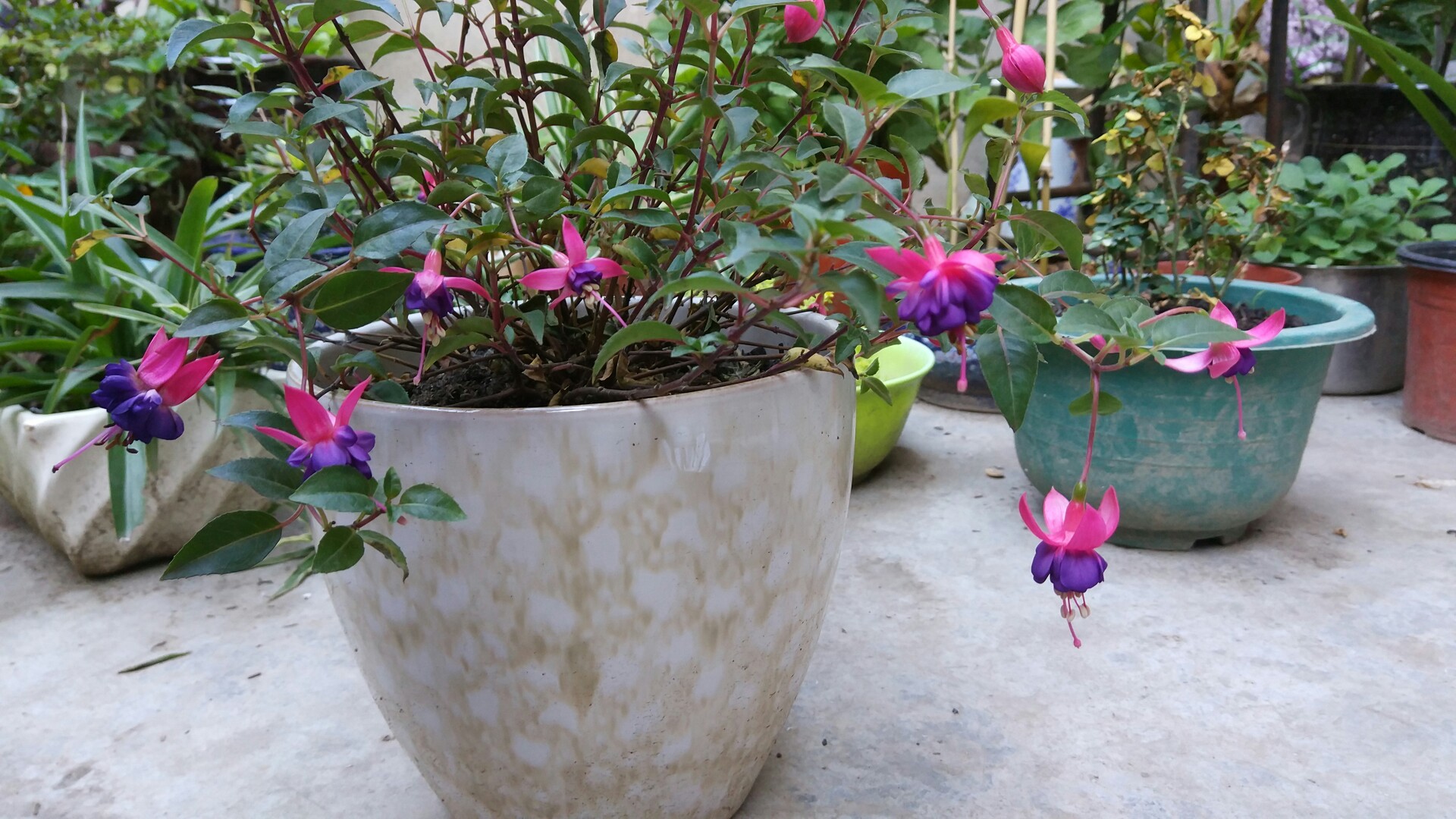 中间的那个就是含苞待放的倒挂金钟。本以为换了大花盆,浇足了水就安枕无忧了。