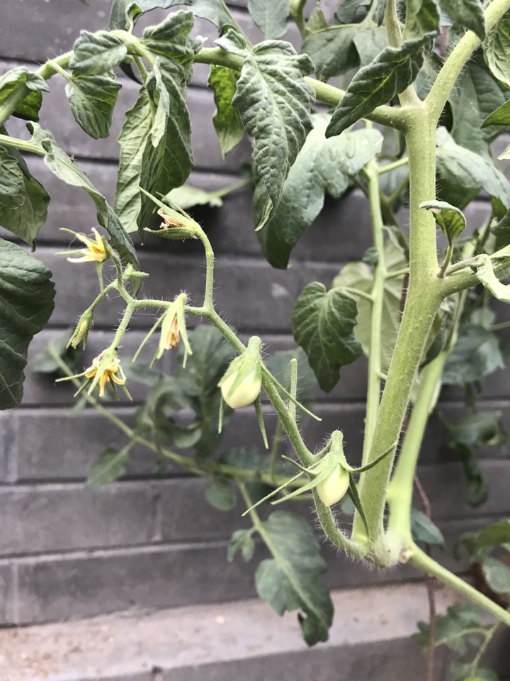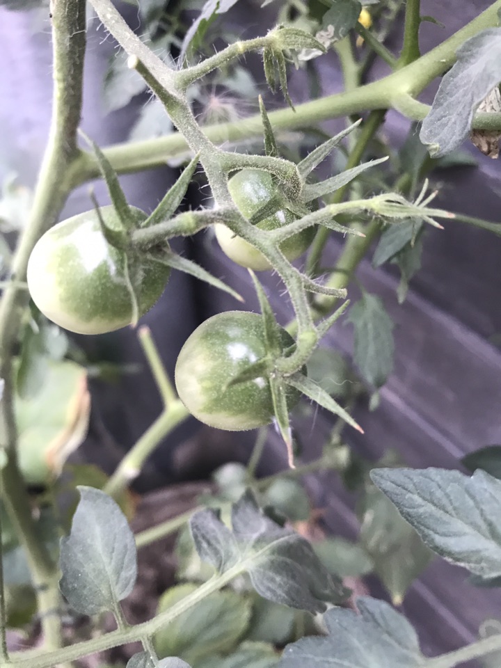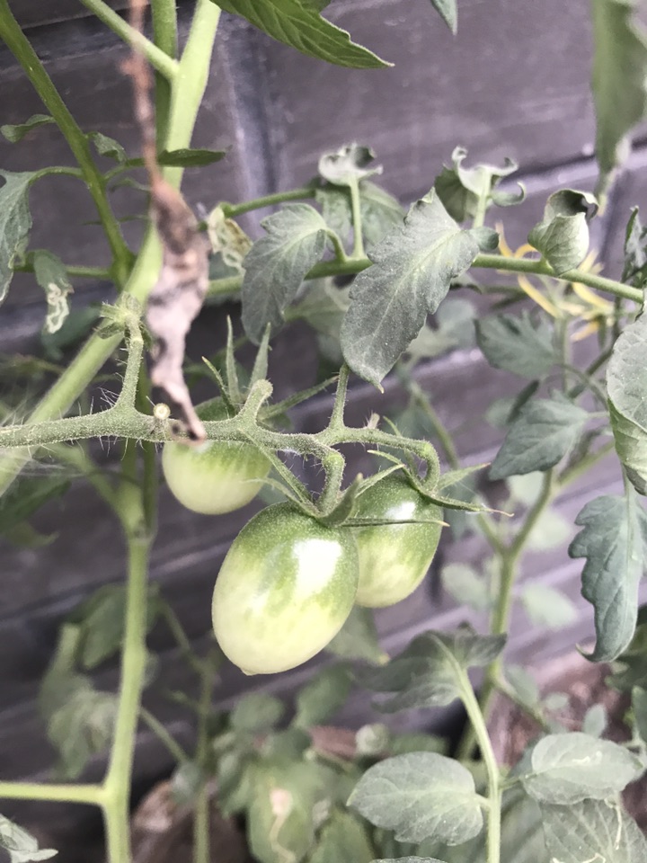 鱼腥草的旁边,种了不少的小番茄。叶子都被骄阳烤的泛起了卷,蔫蔫的,可还是有几棵零星的挂起了果