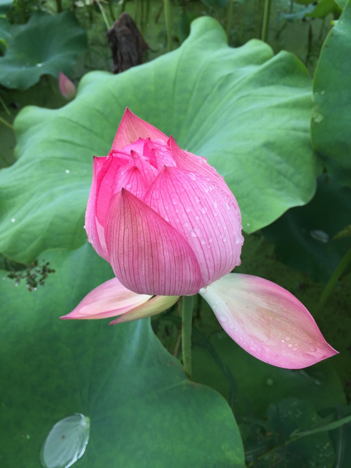 荷叶罗裙一色裁,芙蓉向脸两边开。