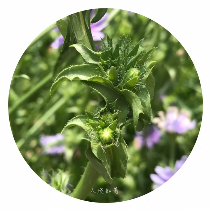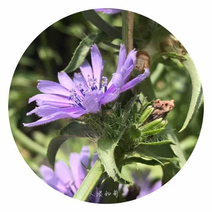 菊苣(Cichorium intybus L.),菊科菊苣属,多年生草本植物。根肉质、短粗。茎直立,有棱,中空,多分枝。叶互生,长倒披针形,头状花序,花冠舌状,花色青蓝。