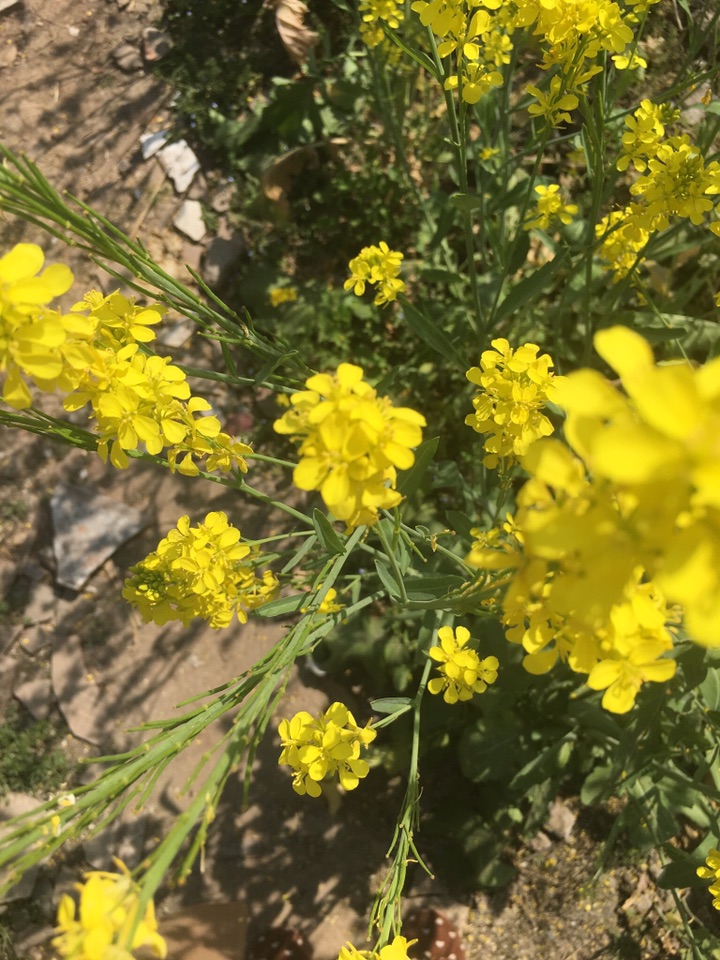 植株笔直丛生,茎绿花黄,基生叶呈旋叠状生长,茎生叶,一般是互生,没有托叶。花两性,辐射对称,花瓣4枚,呈十字形排列,花片质如宣纸,嫩黄微薄。雄蕊通常6枚,4长2短,通常称为“四强雄蕊”,雌蕊由二心皮构成,子房位置靠上。茎圆柱形,直径大多在0.1-0.8厘米之间,多分枝,茎杆较软;叶互生,叶大,浓绿色,无叶柄及托。三、四月间,茎梢着花,花为总状花序,花萼片四片,黄绿色,花冠四瓣,黄色,呈十字形。果实为长角果,到夏季,成熟时开裂散出种子,紫黑色,也有黄色。