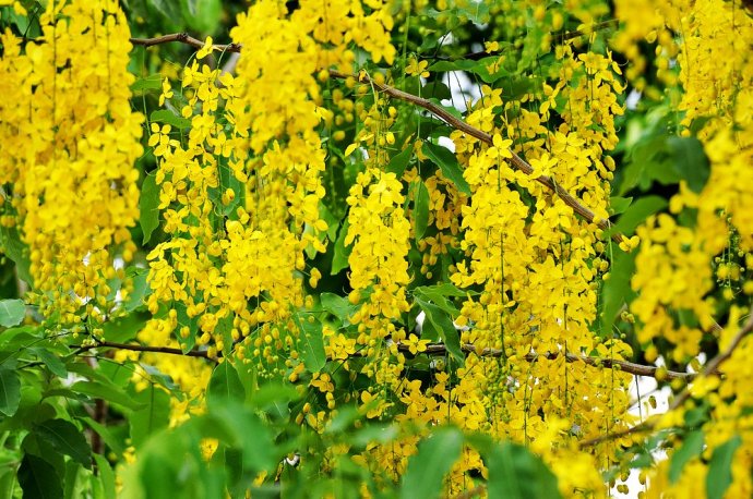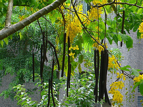 :腊肠树,果实不能吃,盛花的时候最漂亮,现在花少了