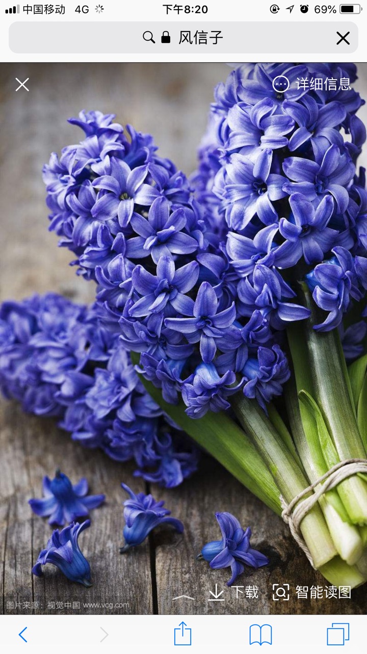 蓝色的风信子:恒心、贞操、彷佛见到你一样高兴、高贵浓郁。