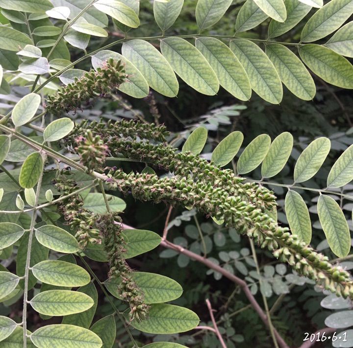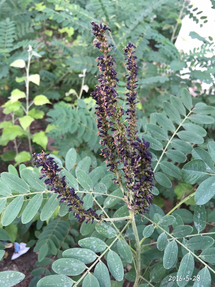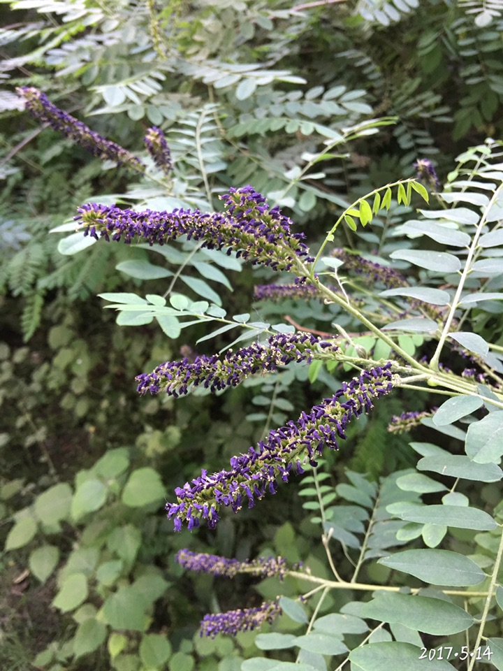 不久后,在另外一个园子里又发现了新植物紫穗槐(当然经形色花友得知),看着它们那柔顺修长的枝条,我豁然开朗,十有八九此槐就是老家用来编筐子的“荆条”也!后回老家时经老爸验证照片得以确认。